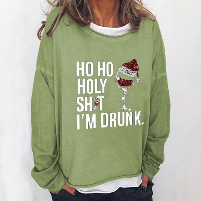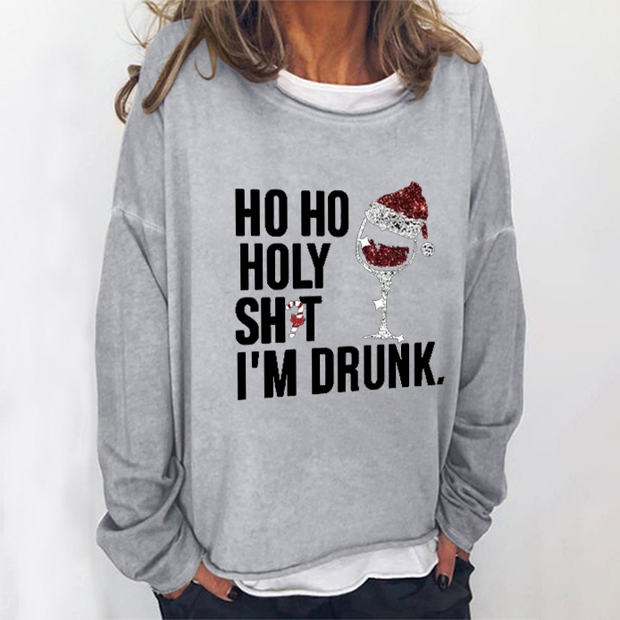 Product NameHo Ho Holy Shit I'm Drunk Printed Women's Crew Neck T-shirt