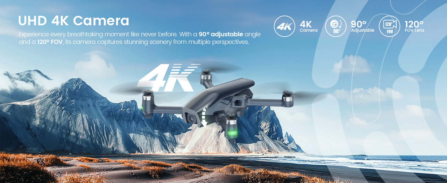 - u30104K Camera with 5G FPV Transmissionu3011The top rank of camera drones for adults. The UHD 4K camera captures your wonderful moments with incredible details; the 120u00b0wide angle lens and remote-controlled 90u00b0adjustable structure broaden your view, and the 5GHz FPV technology guarantees longer and smooth image transmission.