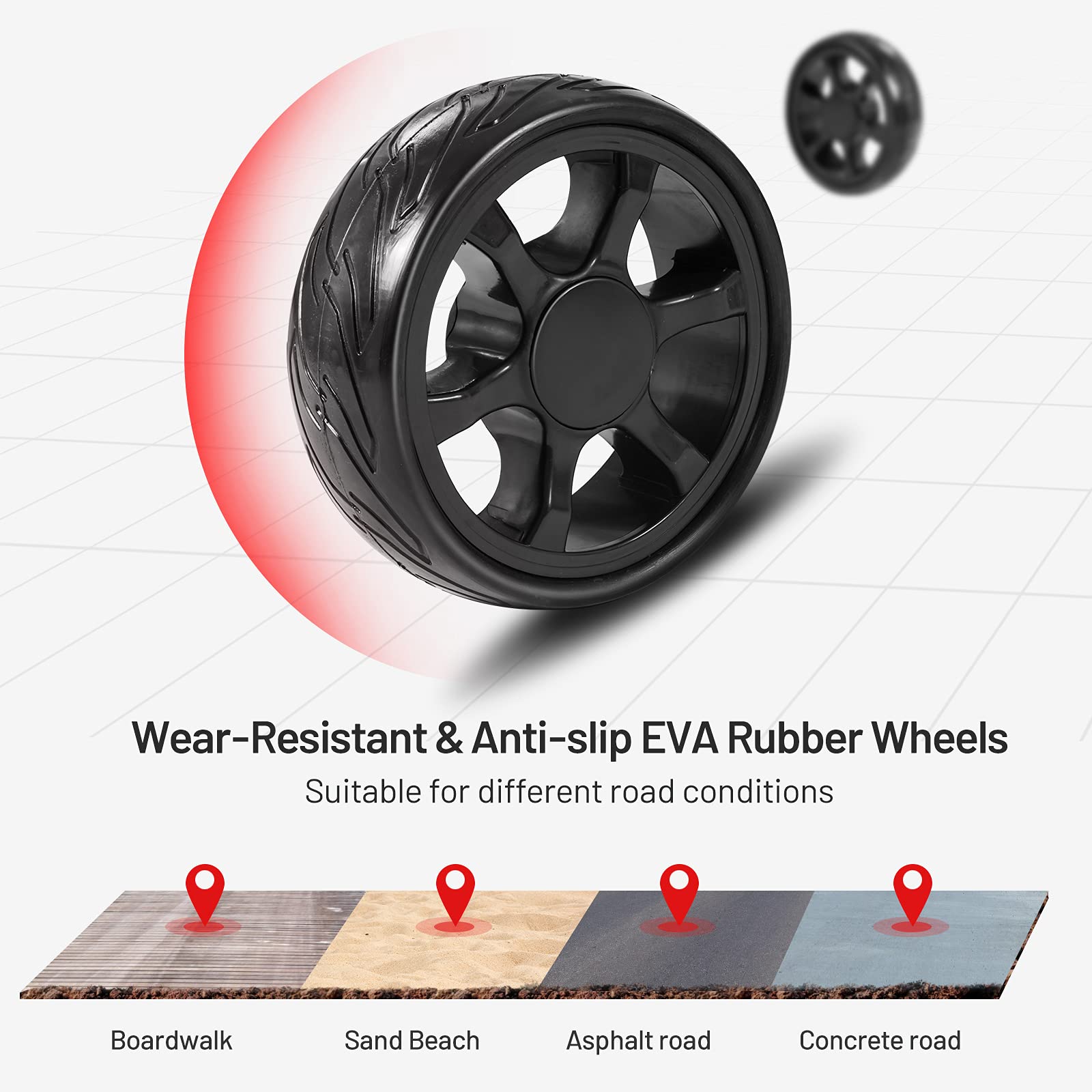 - u3010Wear-resistant Rubber Wheelsu3011Our EVA rubber wheels have strong grip, wear resistance and shock absorption. It is suitable for all kinds of roads, such as asphalt roads, cement roads, sand roads and lawns. The kart frame is made of high quality PP and iron. It has a sturdy structure and strong load-bearing capacity, and can be used for a long time.