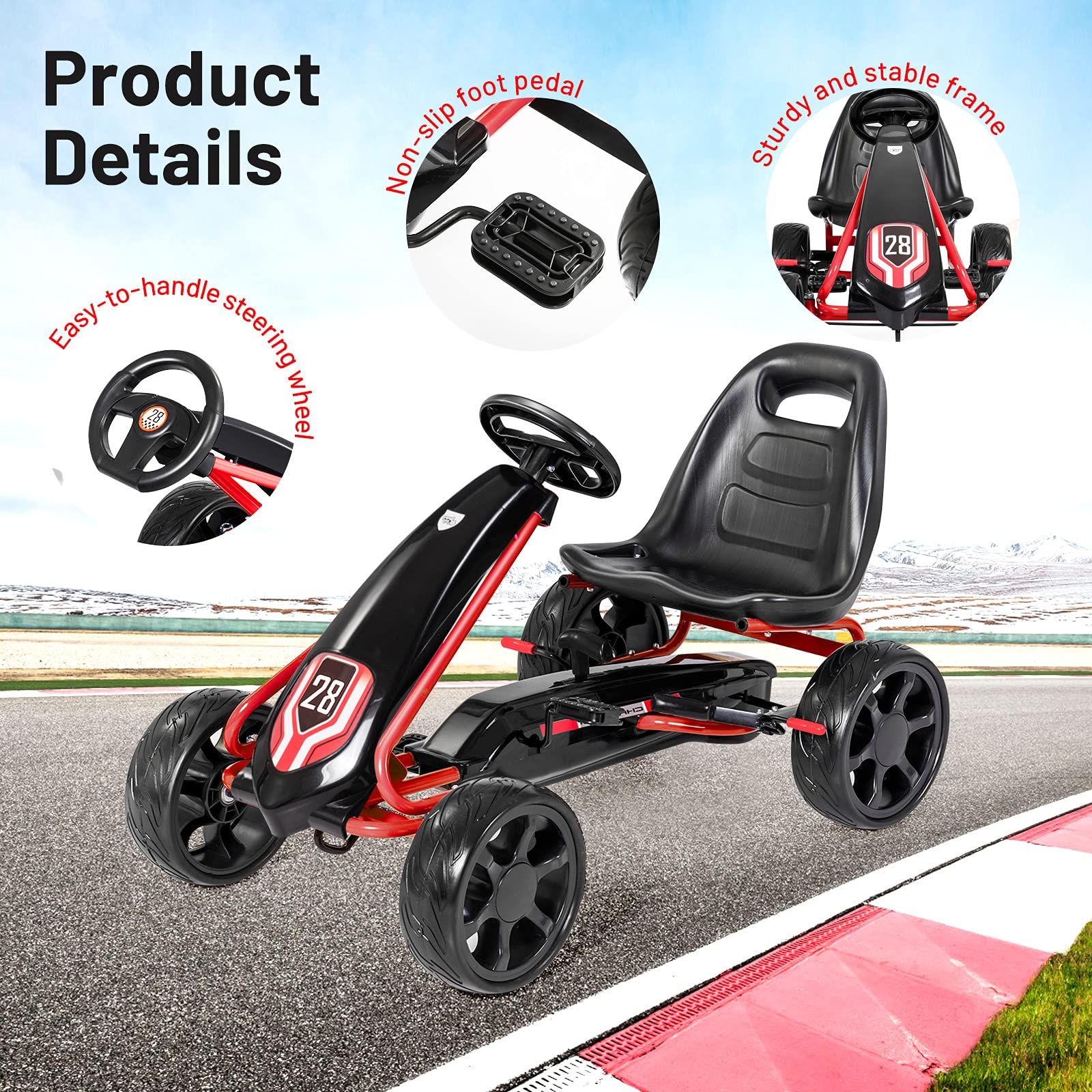 - u3010Perfect Gift for Childrenu3011Our go kart with pedal to encourage the children to drive the go kart and control the speed by themselves, so that the children can feel the driving pleasure, and can enhance their strength, endurance and coordination.
