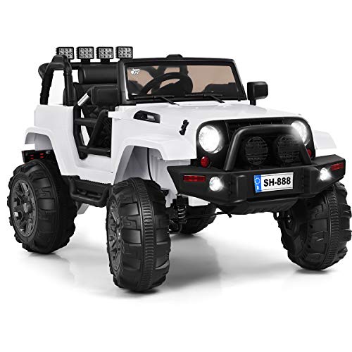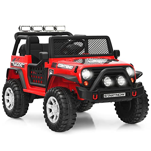 - u3010Multiple Safety Protectionu3011Comes with 2 lockable doors and ergonomic seat with backrest and safety belt, kids will fully be protected when they are driving. And featuring the slow start function, this ride on truck can give kids a buffer when in sudden acceleration. Special mesh windshield and bright headlights enable kids to enjoy self-driving experience.