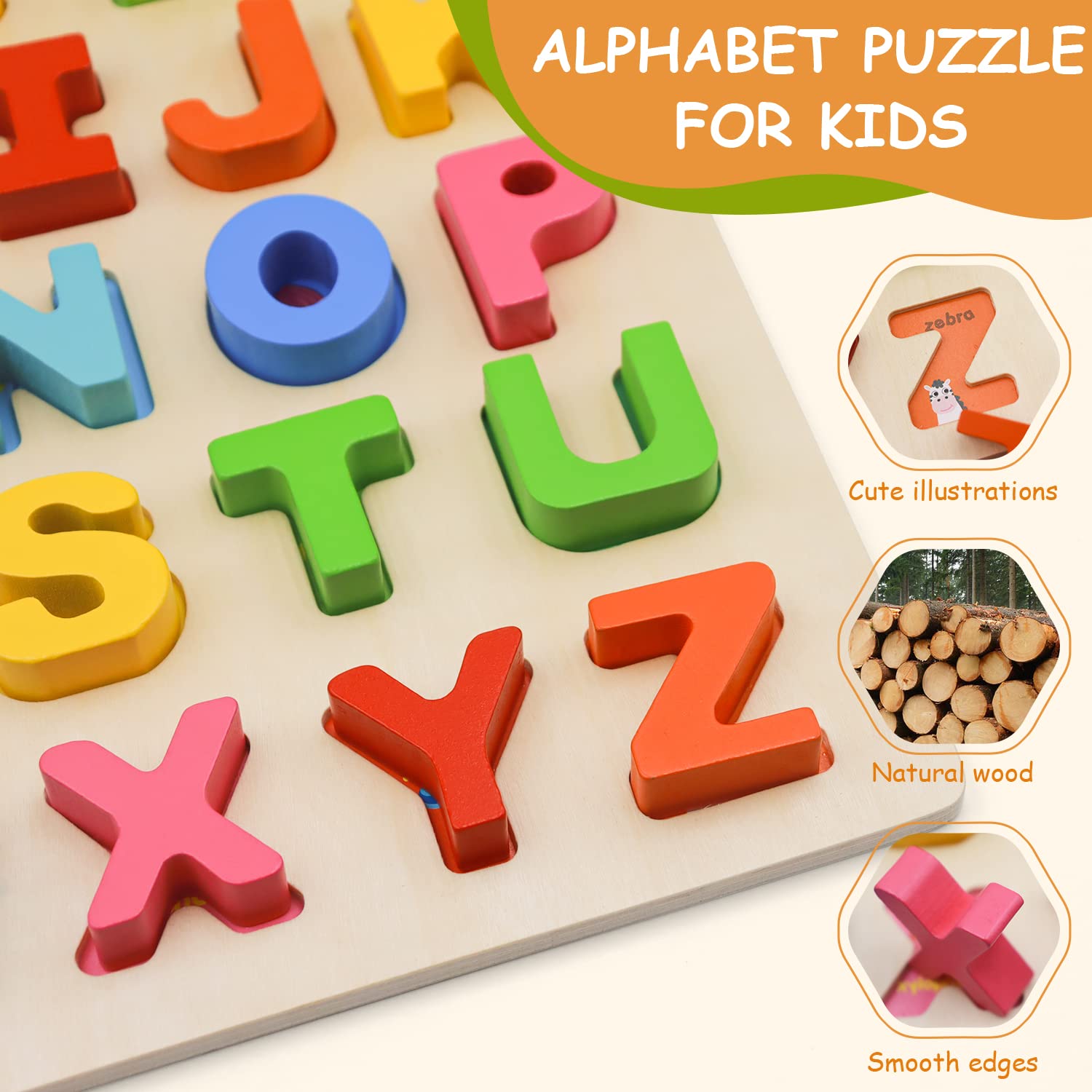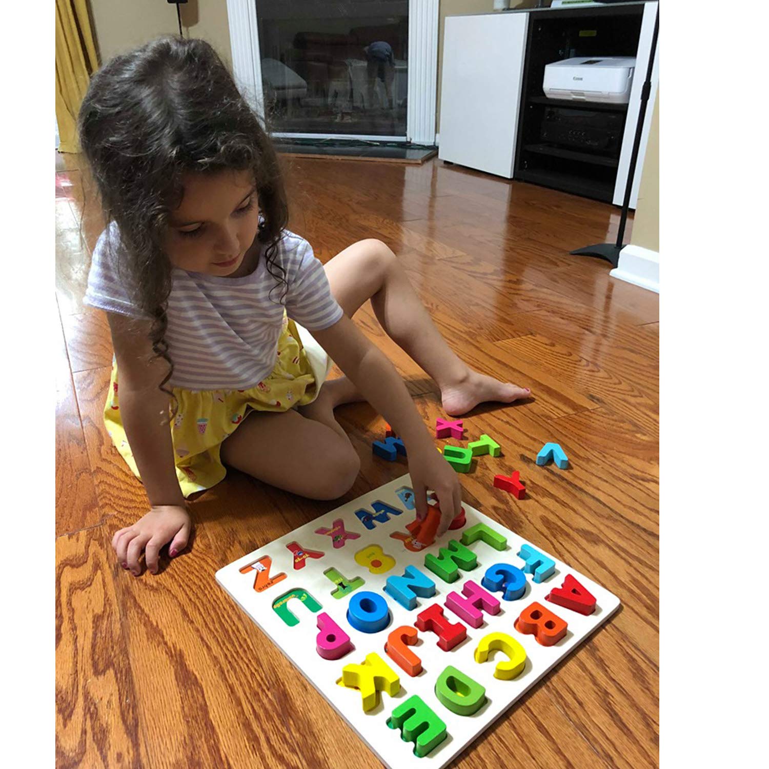 - SWEET ILLUSTRATIONS ON THE BOARD: Are you looking for a ABC puzzle tool for training your kidu2019s brain development and growth? Bright-colors and with a vibrant illustrations underneath each letter, help kids to promote color recognition ability. Great toddler learning puzzles for 3 year old. Your little one will enjoy learning abc while playing this wooden letter puzzle board