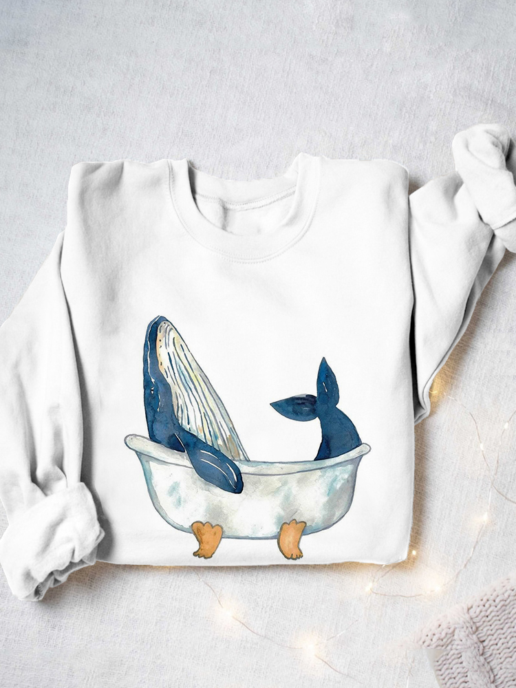• Humpback Whale Taking Bath Watercolor Painting Art Sweatshirt