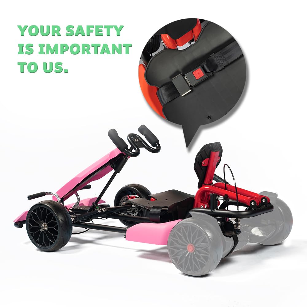 - EASY SET UP, EASY UPGRADE:Be up and running within minutes of arriving. Attaching your hoverboard is as simple as strapping it in place. Need more speed? Upgrade your hoverboard. Need to go off road? Add an off road hoverboard. Take this Kart anywhere.