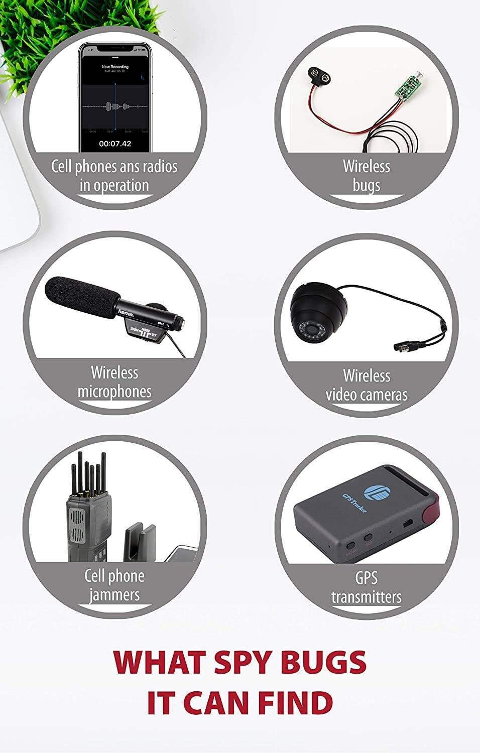 - ELECTRONICALLY SCANS ROOM for hidden wireless microphones and transmitting cameras. Ultimate anti-spy tool lets you quickly locate hidden devices while telling you what kind of spy technology they are. Super fast processor gives you rapid results covering a much wider range of modern bugs. Lets you outsmart thieves, spies, pranking friends, suspicious spouse, nosy boss and many more.
