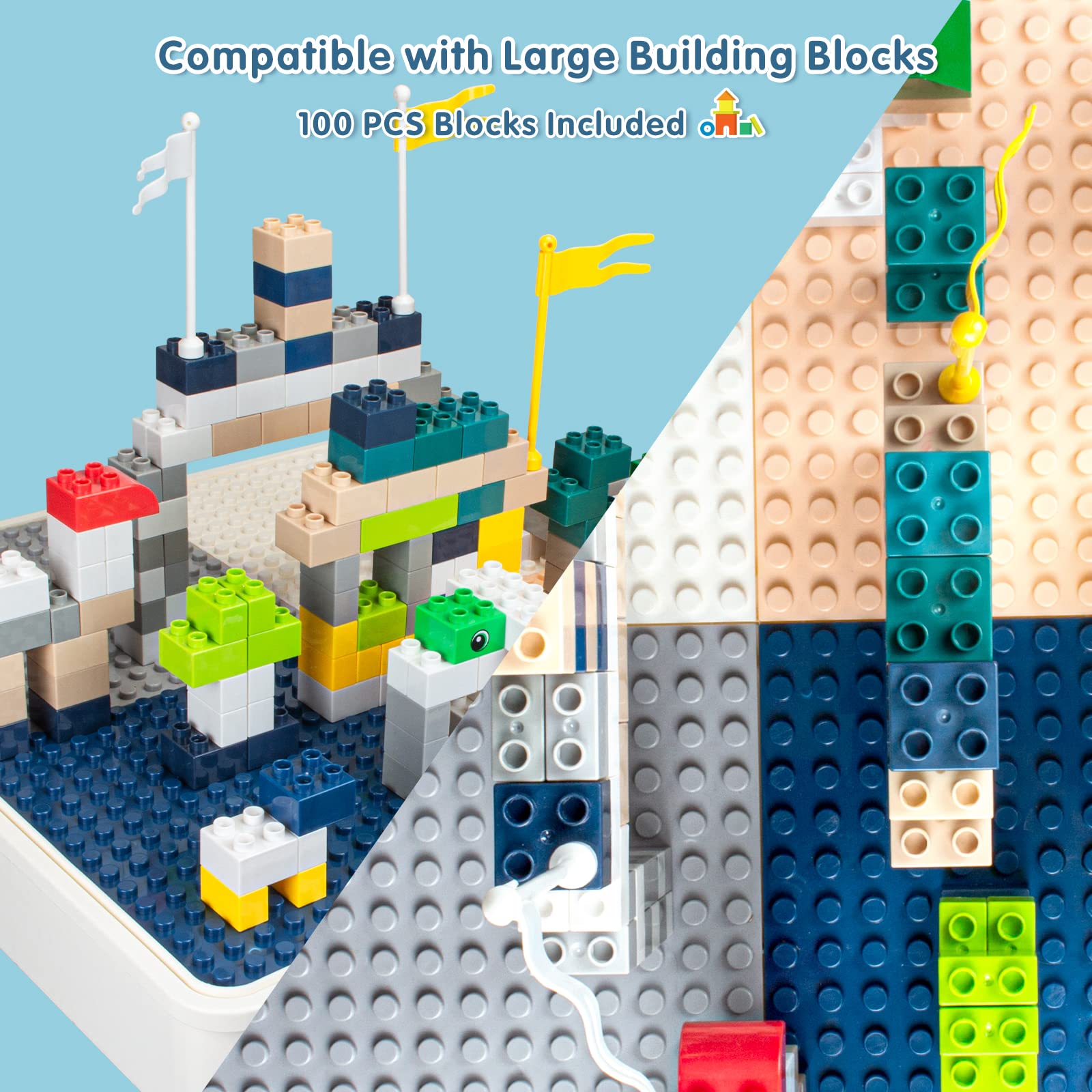 - u3010Come with 100PCS Building Blocksu3011Extra 100 PCS large building blocks as gift, your little ones can use their imagination to construct freely and also can easily mix with their own blocks. The building block table compatible with large building blocks.