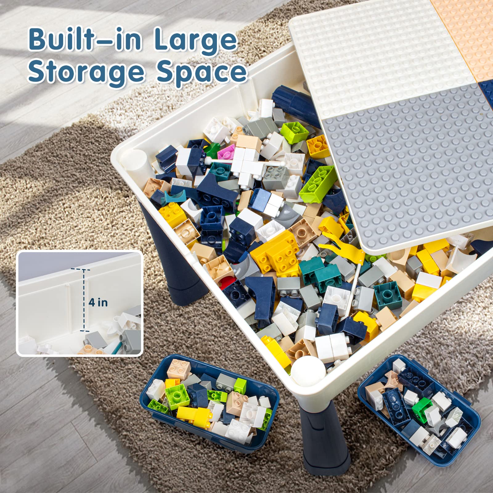 - u3010Crazy Gift for Kidsu3011This kids activity table and chair set is the ideal gift for both girls and boys, will make it an excellent play center for kids entertainments for hours. The whole blocks table include 1* multi activity table, 2* chairs, 2 * storage boxes, 4* heightening pads, 100 PCS building blocks, 1*water plug.