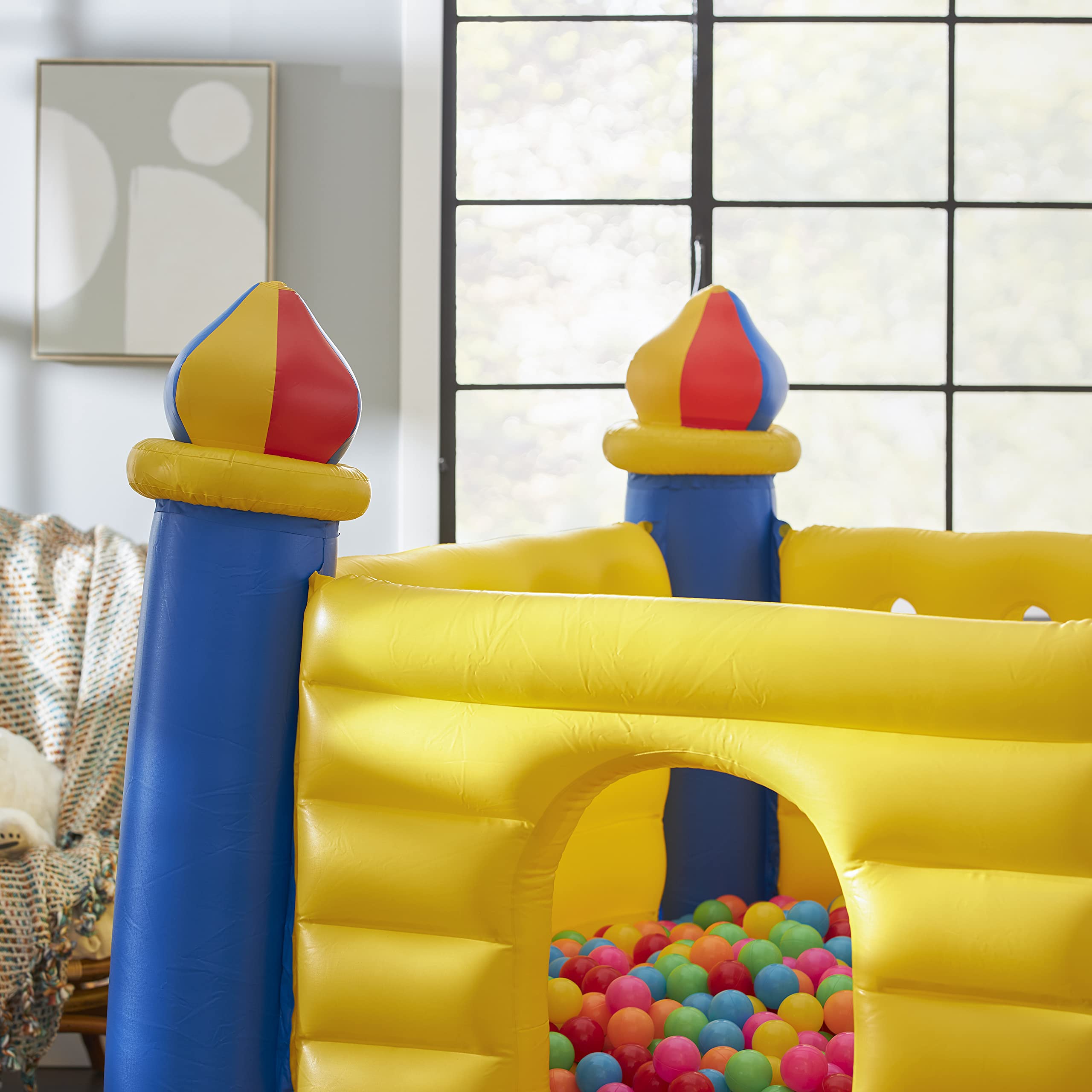 - Colorful and fun-filled bounce house and 100-pack of brightly colored plastic balls give your kids the perfect place to burn off all their extra energy
