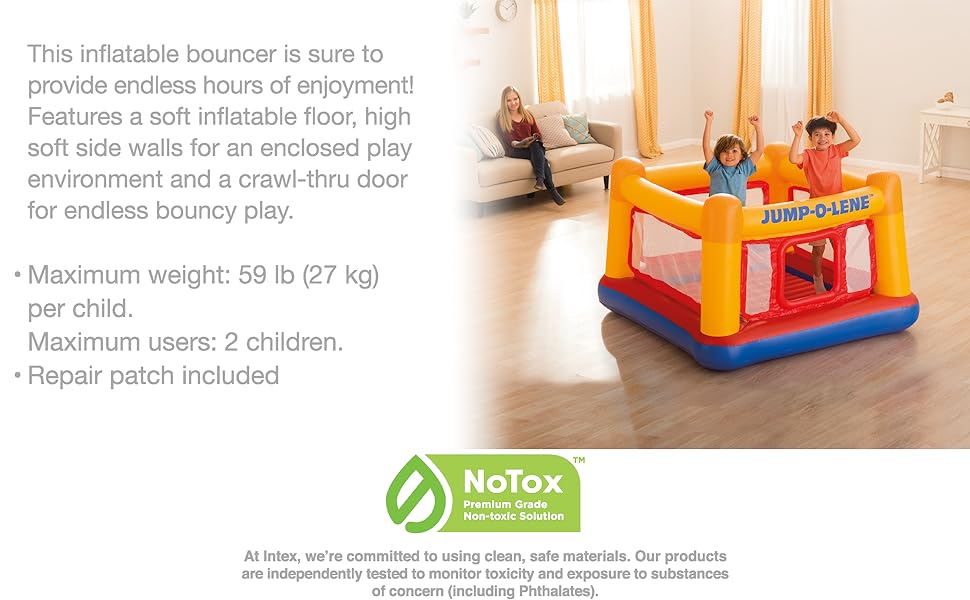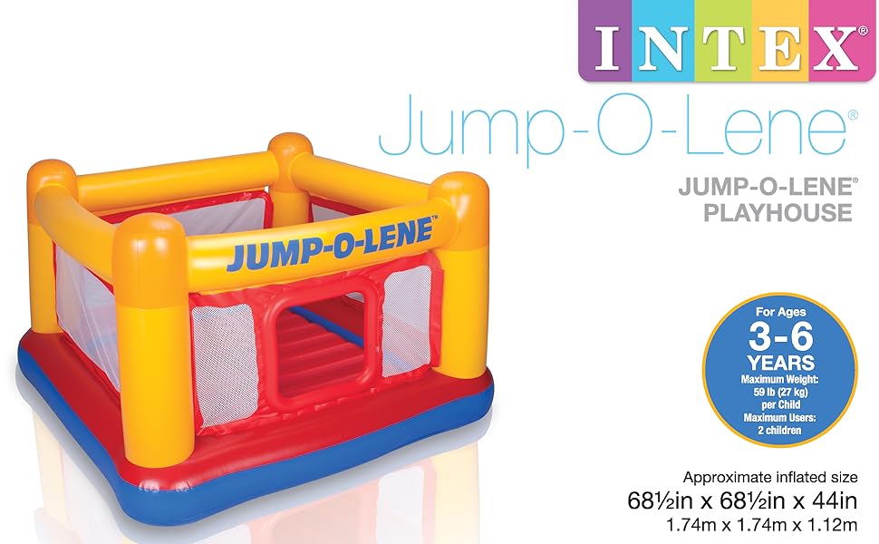 - Package includes an all-day fun Jump-O-Lene bounce house for kids ages 3 to 6 years of age with an efficient, convenient 120V Electric Air Pump