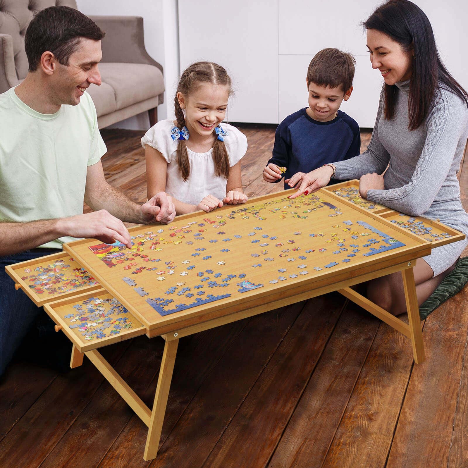 - u3010Reliable And Easy Storageu3011Uniquely constructed, keep your unfinished puzzles safe until youu2019re ready to continue your work of art. Our lightweight puzzle table is easy to store. When you complete your puzzle masterpiece, you can place the puzzle board under the sofa, on the table, or on the floor