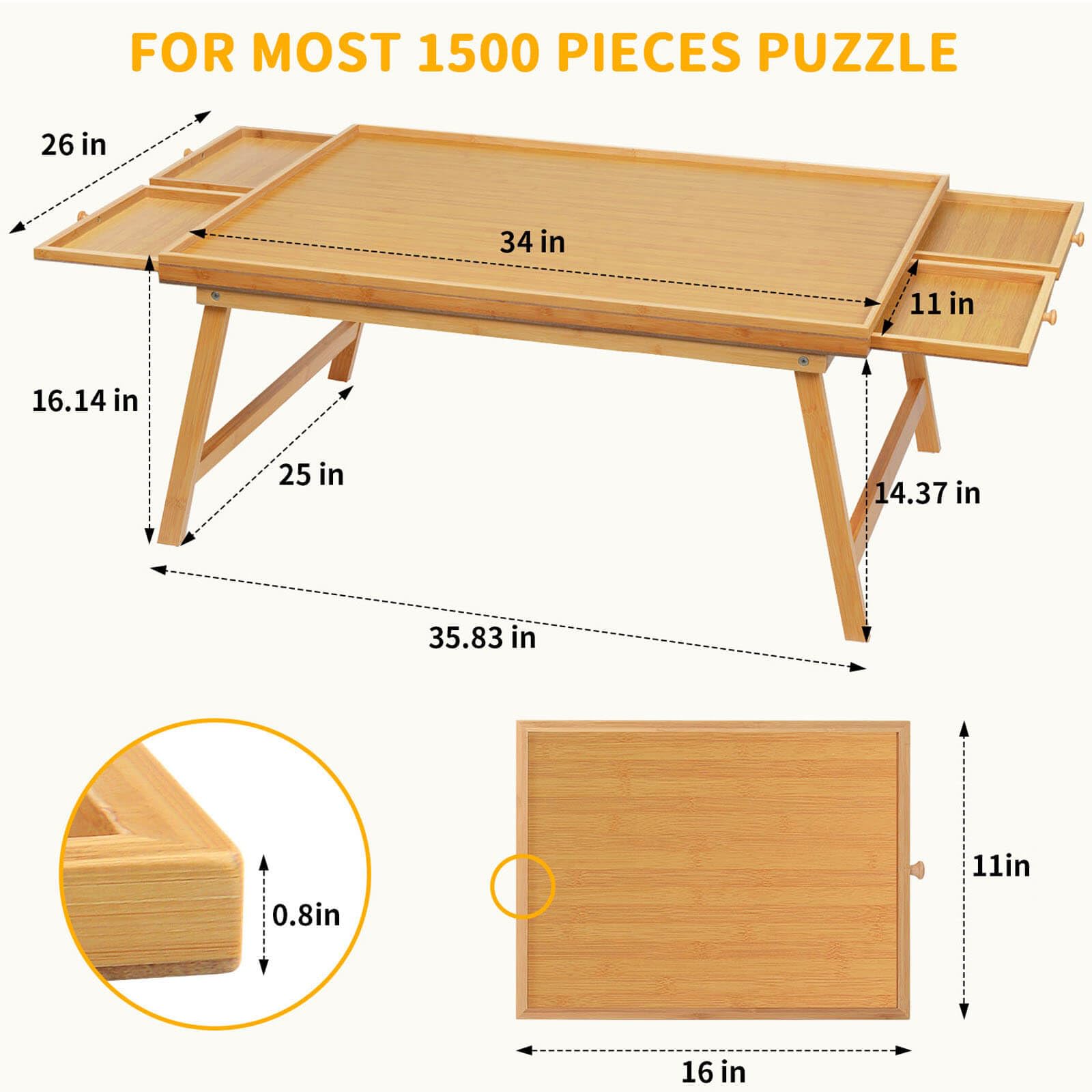 - u3010High-quality Puzzle Boardu3011The size 26" x 35" puzzle board that holds up to 1500 piece puzzles. The puzzle board is made of high-quality natural bamboo and MDF, environmentally and safe, moisture-proof, and durable materials to ensure long-lasting use not cave in or warp, crack. The smooth and non-slip surface provides an excellent area to assemble your favorite puzzle with your friends or family