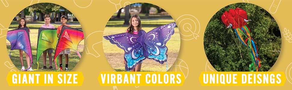 - UNIQUE DESIGN. Our Easy Flyer Kites features a soft gradient rainbow color, a warm gradient color and a cold gradient color that will surely lighten up your mood as it flies and adds color to the sky. This includes 3 pieces of Nylon Kites 43.3 inch (110 cm) Wide x 23.6 inch (60 cm) long with 57.1 inch (145 cm) Tails and an Assembling Instruction Guide. The kite handle string is 262.5 ft (80 m).