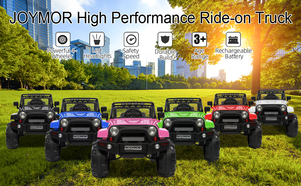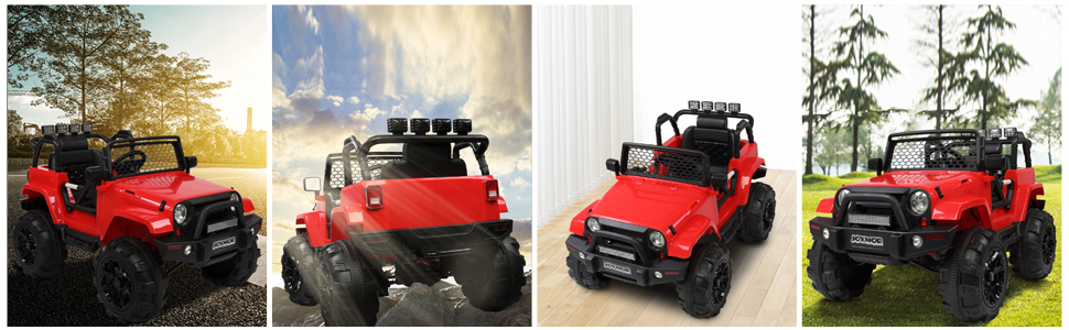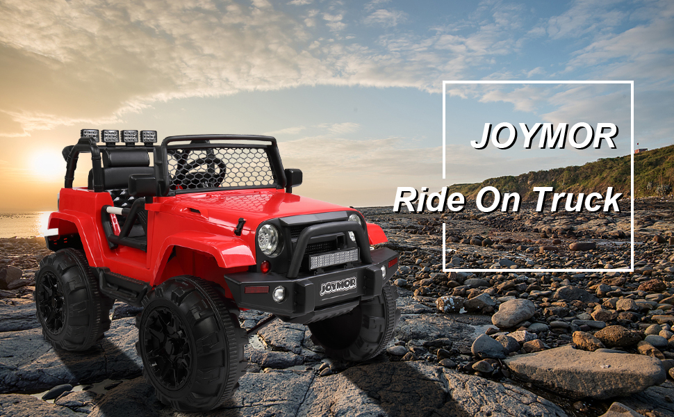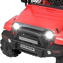 - Stylish Appearance: Two bright LED headlights, double lockable doors and grid windshield make the ride on powered car more sleek and sporty. Drive the truck car will make your kid stand out from all the other kids in luxury!