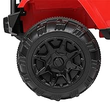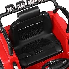 - Upgrade Wider Soft Seat:Equipped with upgrade wider soft seat with 15.8 Inches width with adjustable safety belts. Rubber traction strips on all tires. 4 power wheels with spring suspension system can greatly reduce the shock. Let the child can be fully immersed in the joy of driving