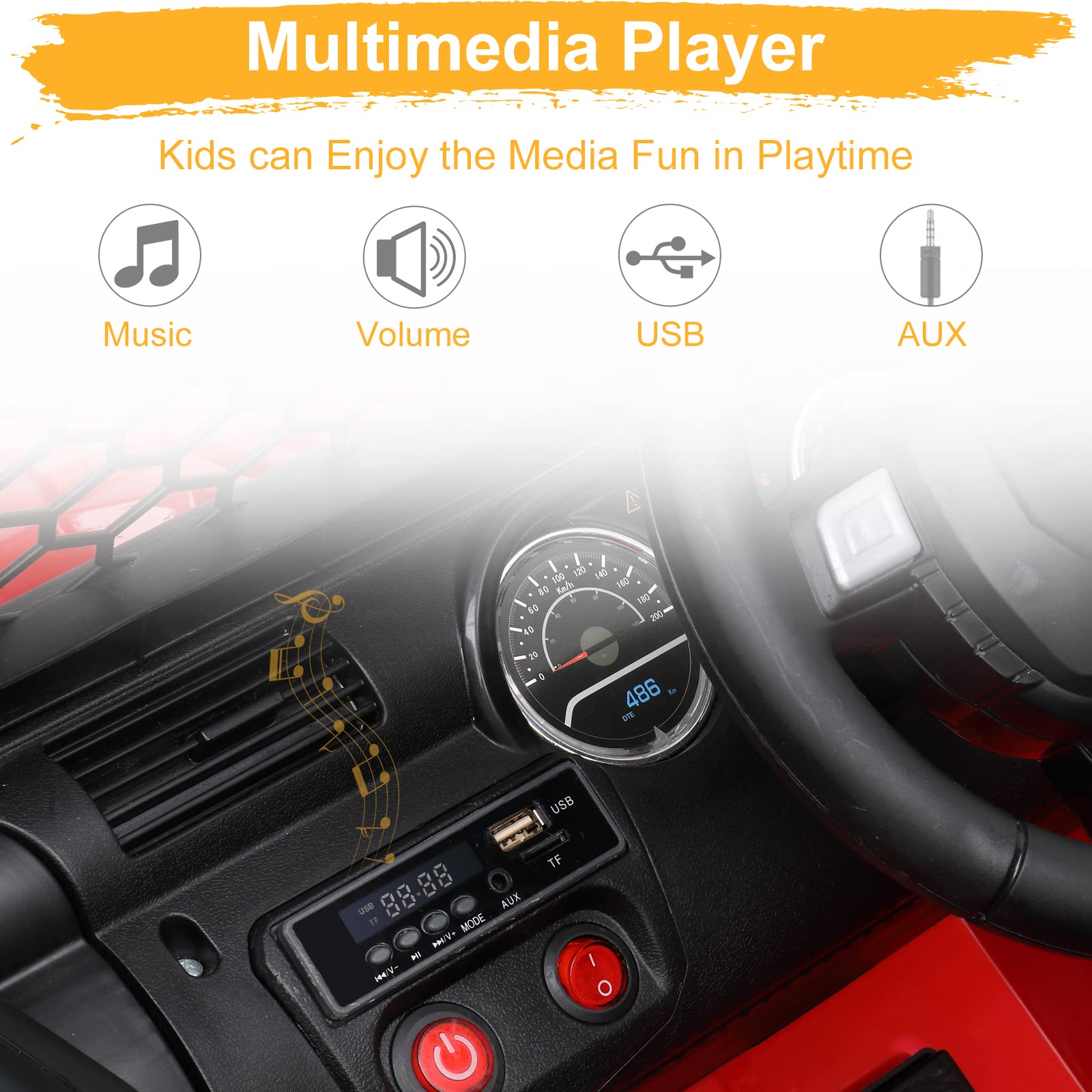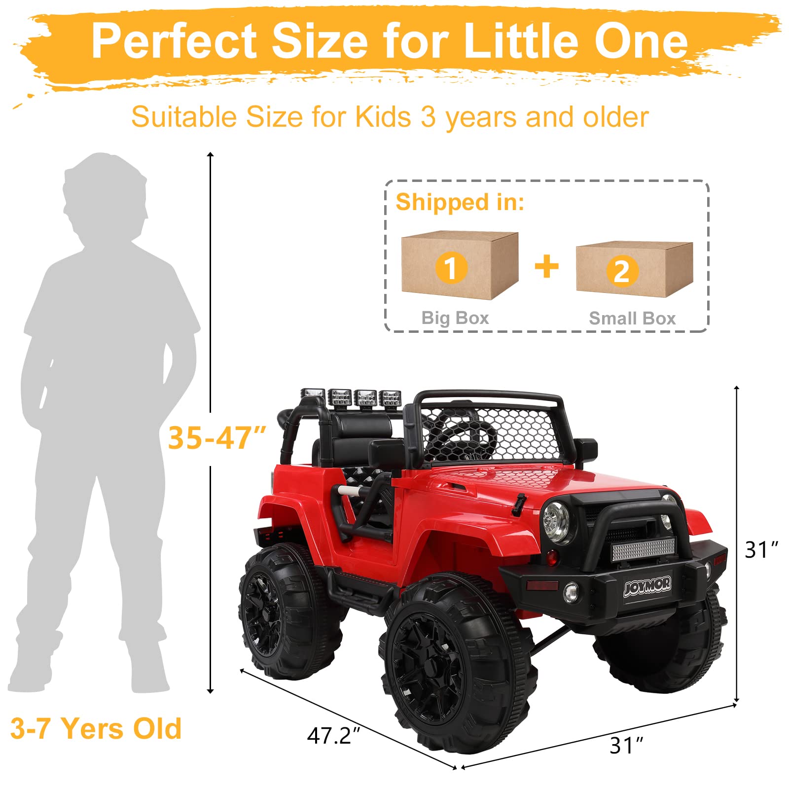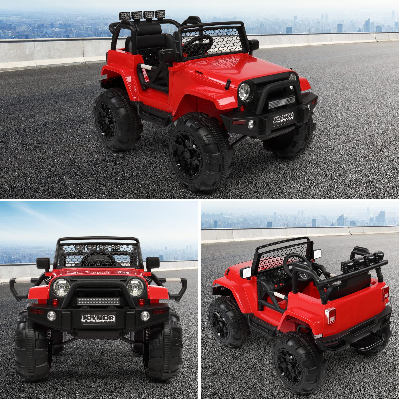 - Stylish Appearance: Two bright LED headlights, double lockable doors and grid windshield make the ride on powered car more sleek and sporty. Drive the truck car will make your kid stand out from all the other kids in luxury!