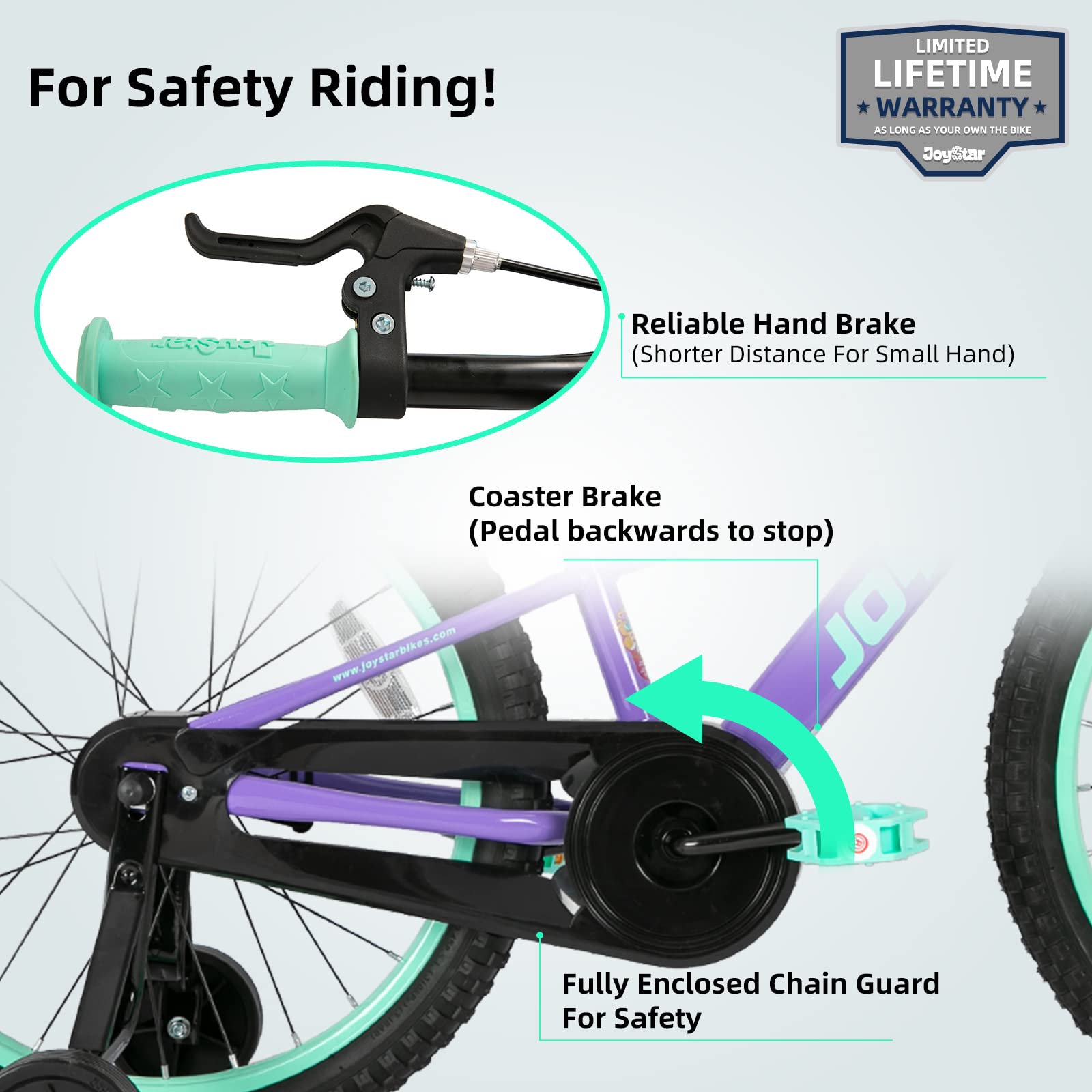 - Safety Riding: Rear Coaster brake and Front Caliper Brake (Handbrake) offer double safer, this kids bike will have more stopping power. The 2.14-inch-wide tires for outstanding grip and stability in any weather conditions, single-speed drive train is easy for your little thrill-seeker to get pedaling up to speed in a flash.