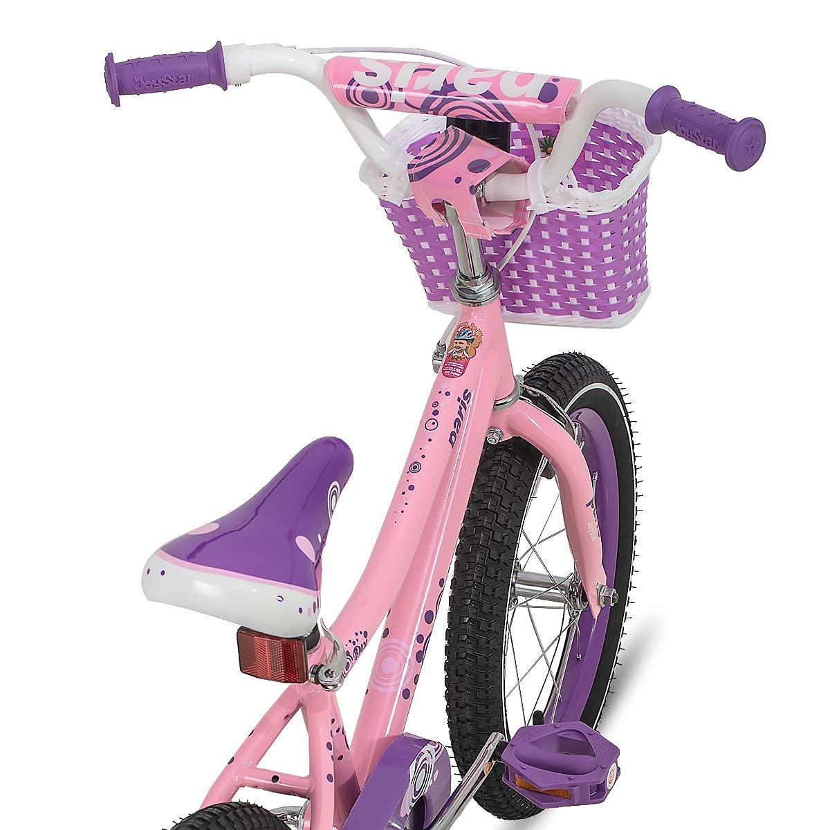 - 4, Single-speed drivetrain and soft grips keep it easy for her to learn and feel comfortable behind the wheel. The bicycles come with basket and DIY Decal stickers adding more fun for your child to get pedaling up to speed in a flash. Non-slip resin pedal with reflectors and one piece crank contribute to the minimum maintenance.