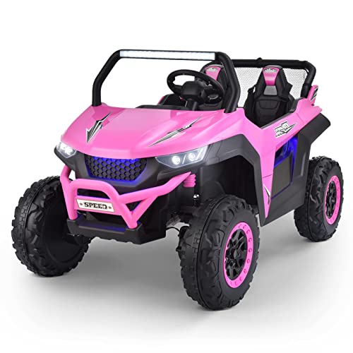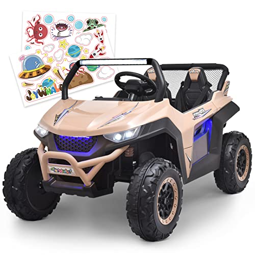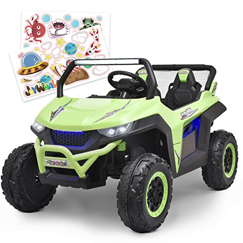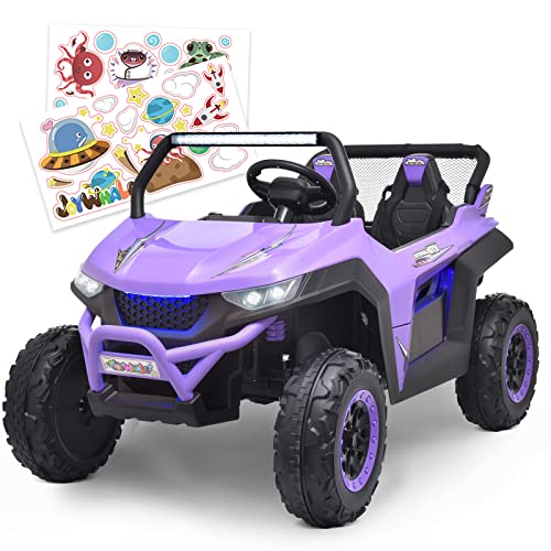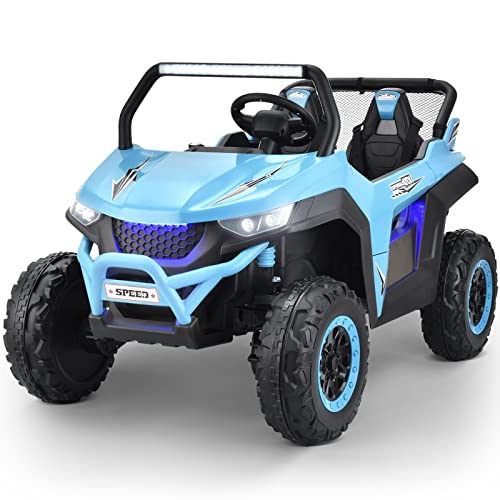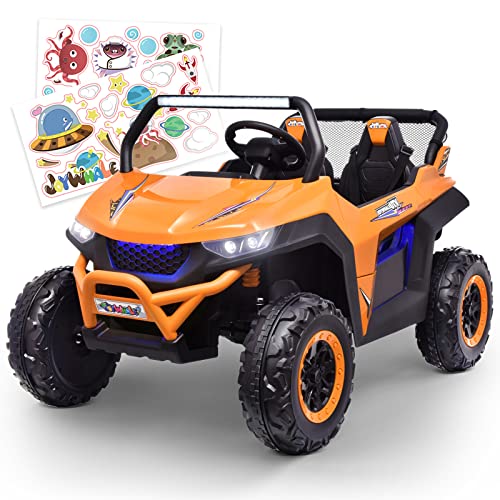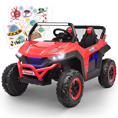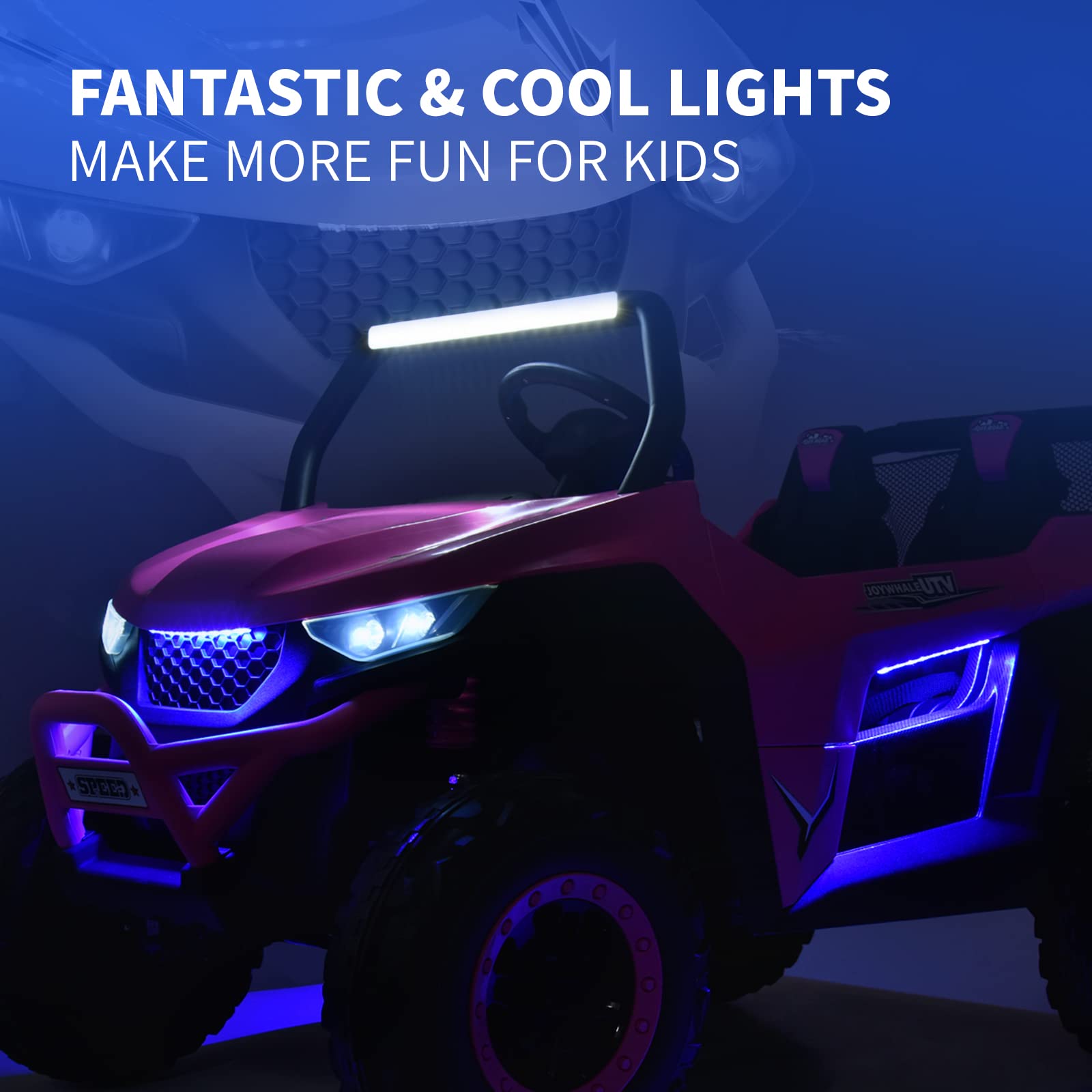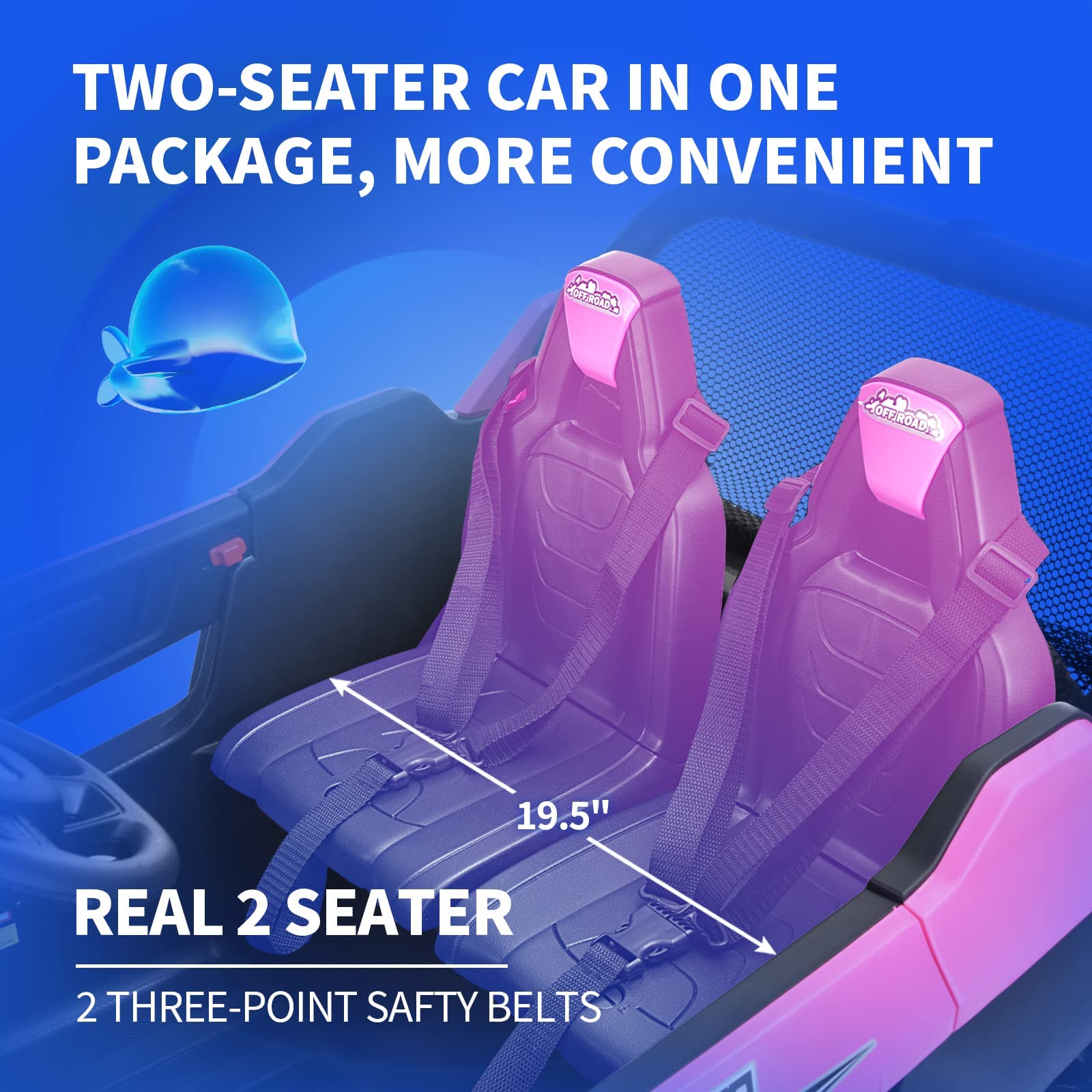 - ud83dude97u30102 Seater & 2 Driving Modesu3011Joywhale 2 Seater UTV adopts an extended seat with a seat length of up to 19.5", which can accommodate two kids to play simultaneously, realizing the joy of two surprises in one toy. Each seat has a reinforced three-point seat belt to protect the child's safety. And it can support two driving modes: parental remote control & kids manual operation. Adults can use the 2.4G remote control if kids are too young.