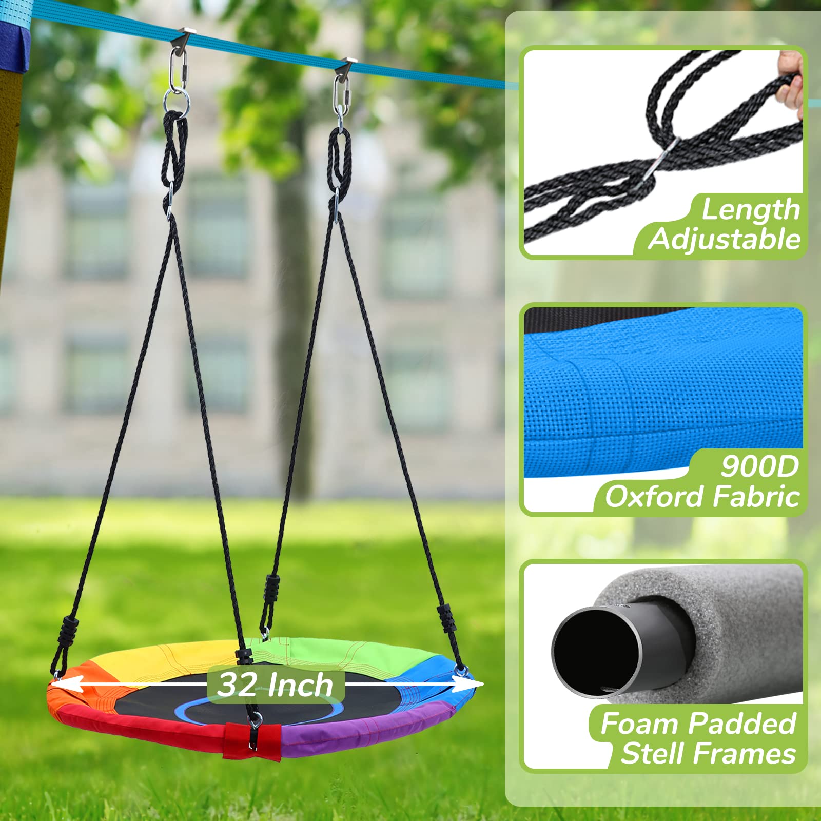 - u3010Safety Comes Firstu3011Sturdy nylon, stainless steel triangle clips and galvanized iron carabiners will last for years. Upgraded clips have reduced the chance of the strap being frayed. Safe outdoor play equipment for kids and portable toy to take it camping.