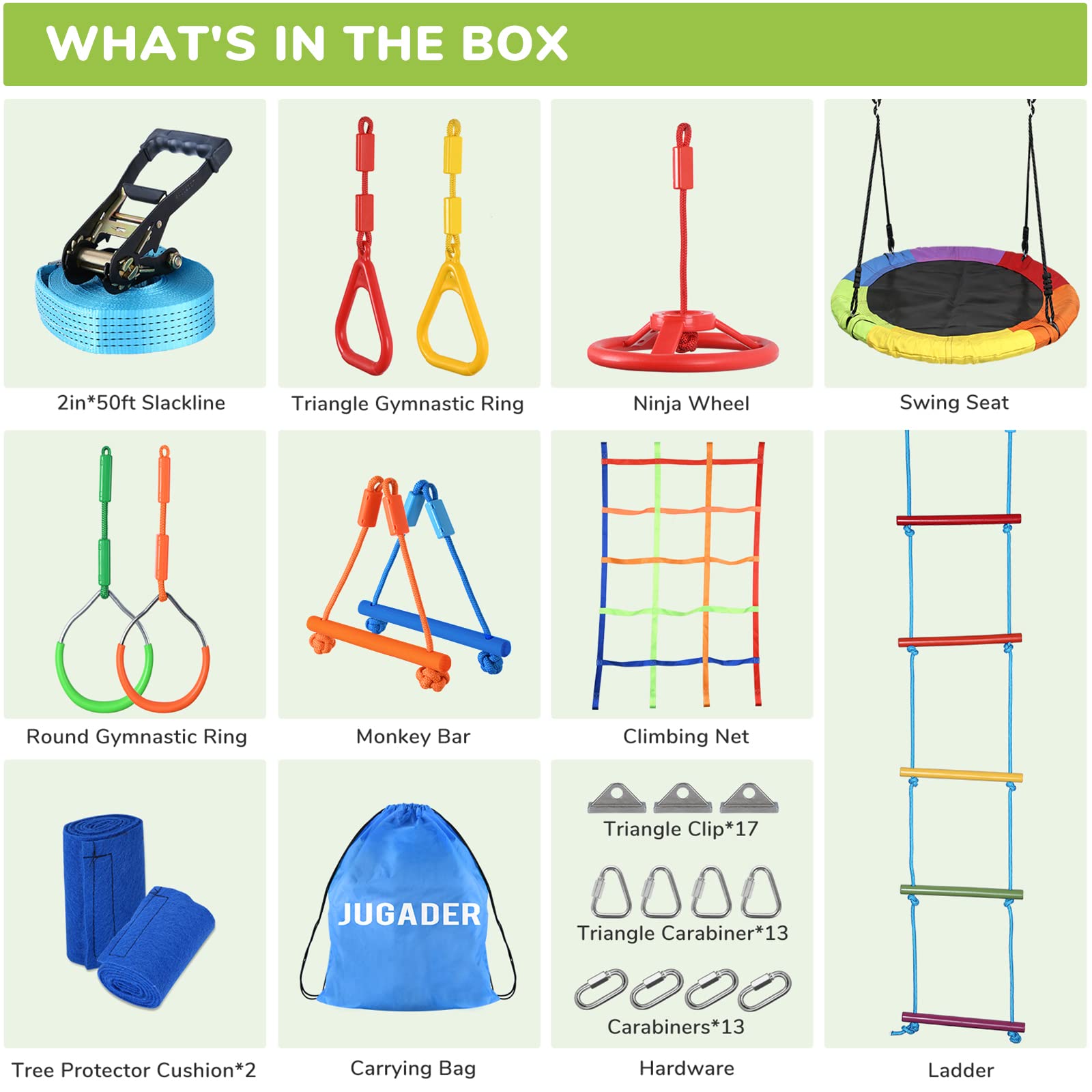 - u3010No fixed Obstacles, No Fixed Distanceu3011The distance between obstacles and the order of them can be adjusted to adapt to your kids. Children can have fun and grow stronger with Jugader jungle gym.