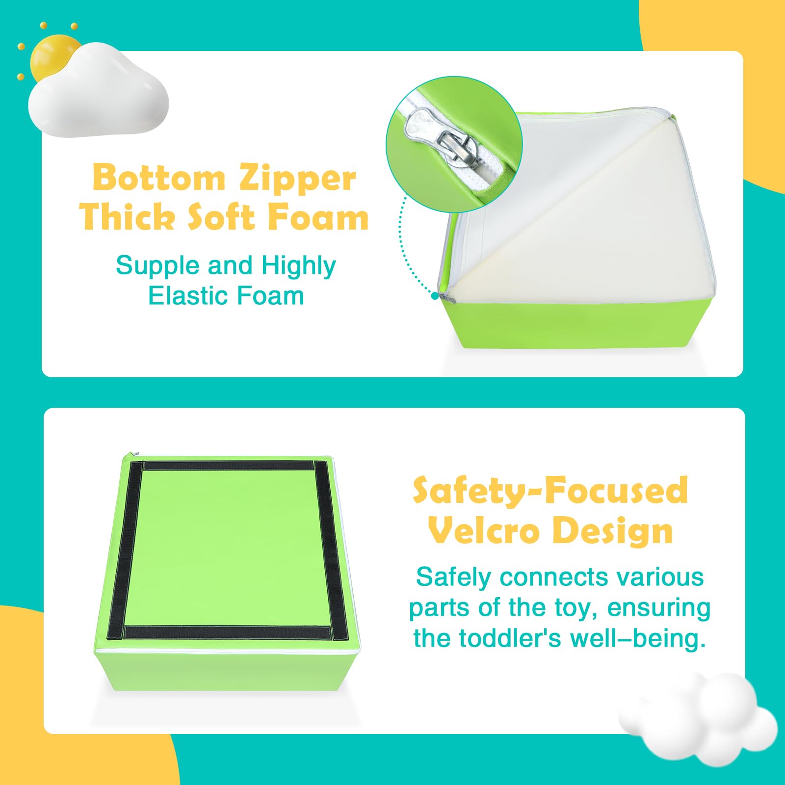 - Attention to Detail: This baby climbing blocks contains Velcro connections that allow parents to simply attach the various components, as well as a non-slip bottom. With painstaking attention to detail, this baby climbing toys indoor ensures infants' safety and stability while playing.