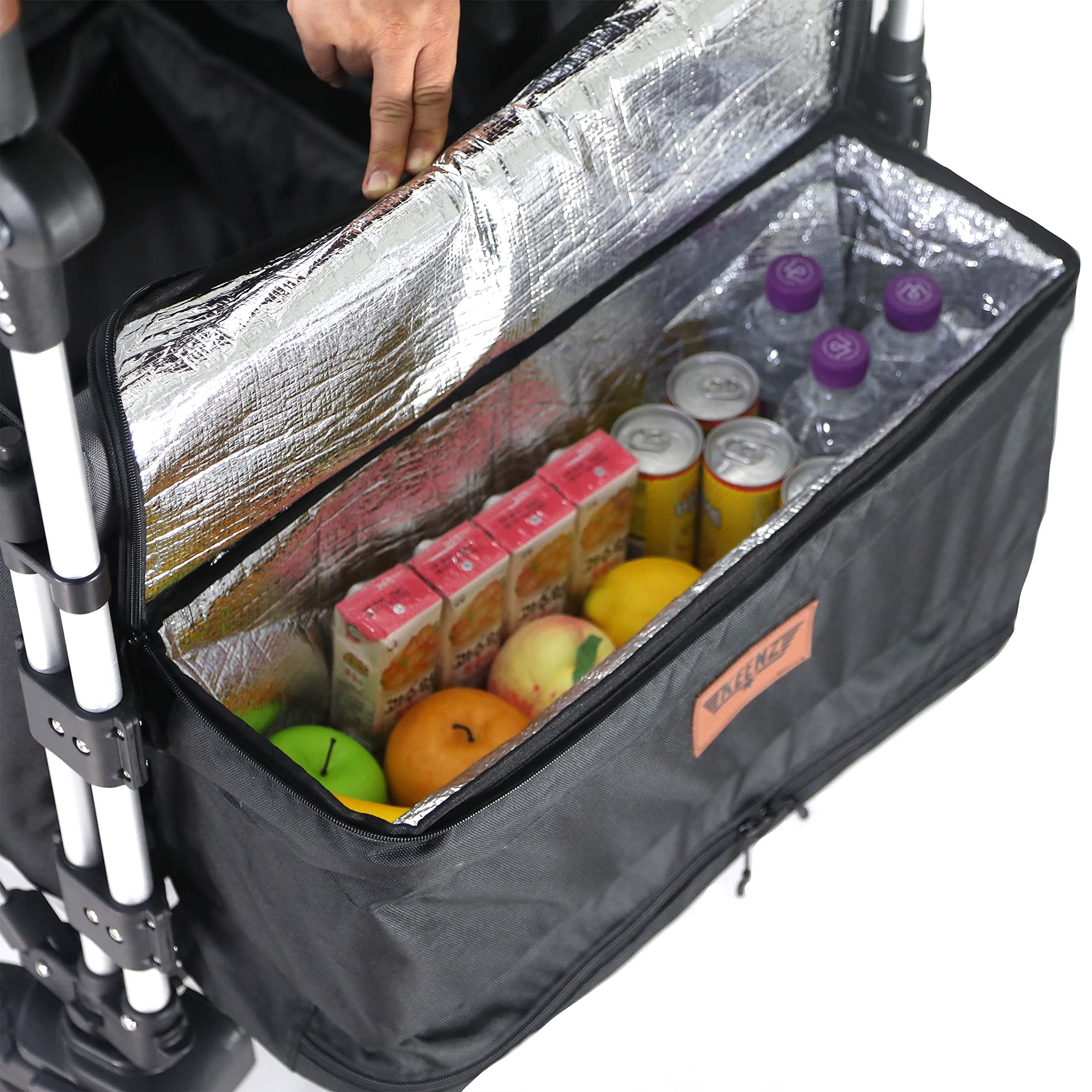 - Not just a stroller wagon, but also a functional utility wagon. with a cooler and storage bag for convenience. Enjoy ventilated shoe storage, 4 internal pockets for organization, and 2 external zippered pockets for added security during outings.