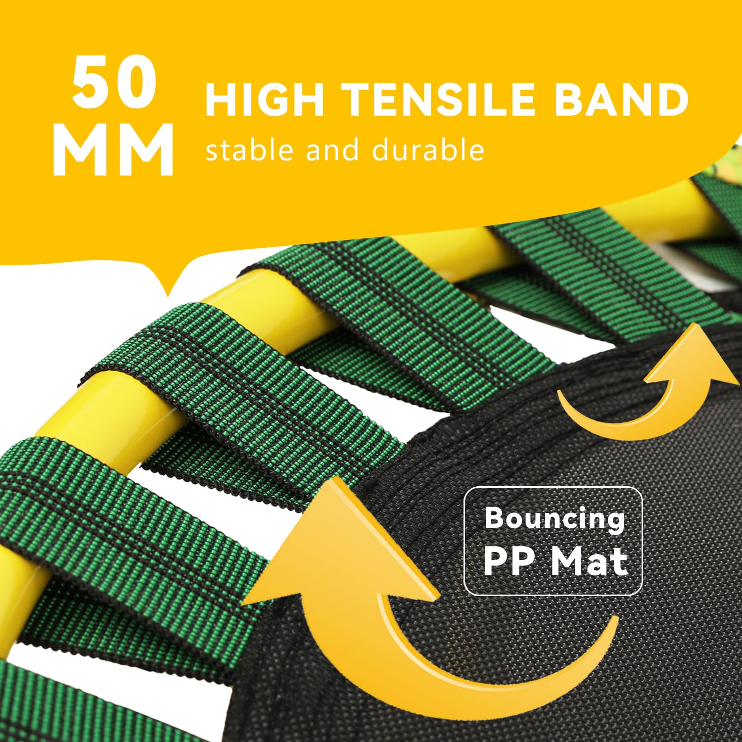 - u3010Springfree Jumping Matu301130 high-tensile elastic band make the childrenu2019s trampoline bounce enough to workout effectively. Every leg is covered by a durable suction cup, making the mini indoor kids trampoline stable and preventing floor from scratches.