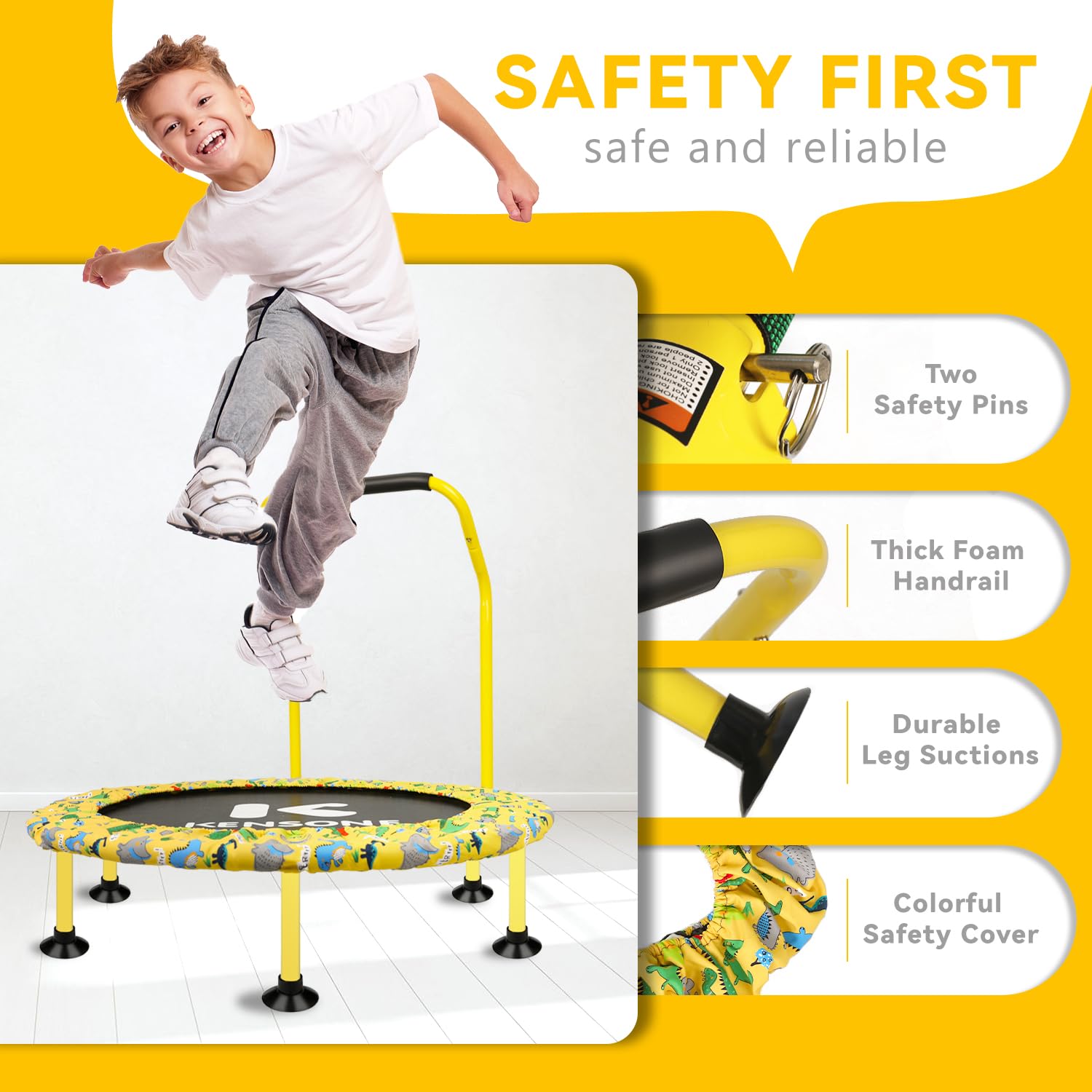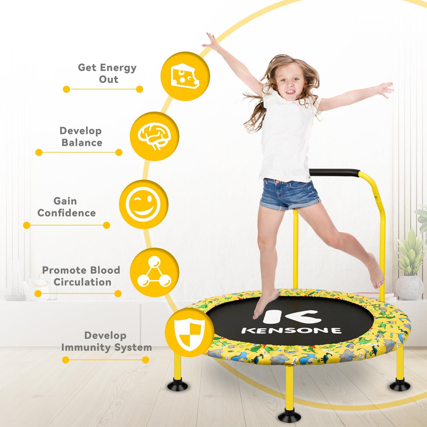 - u3010Burn Off Kids Energy u3011KENSONE indoor fitness trampoline for toddlers can help kids to get energy out, especially in winter months, freeing your sofa.