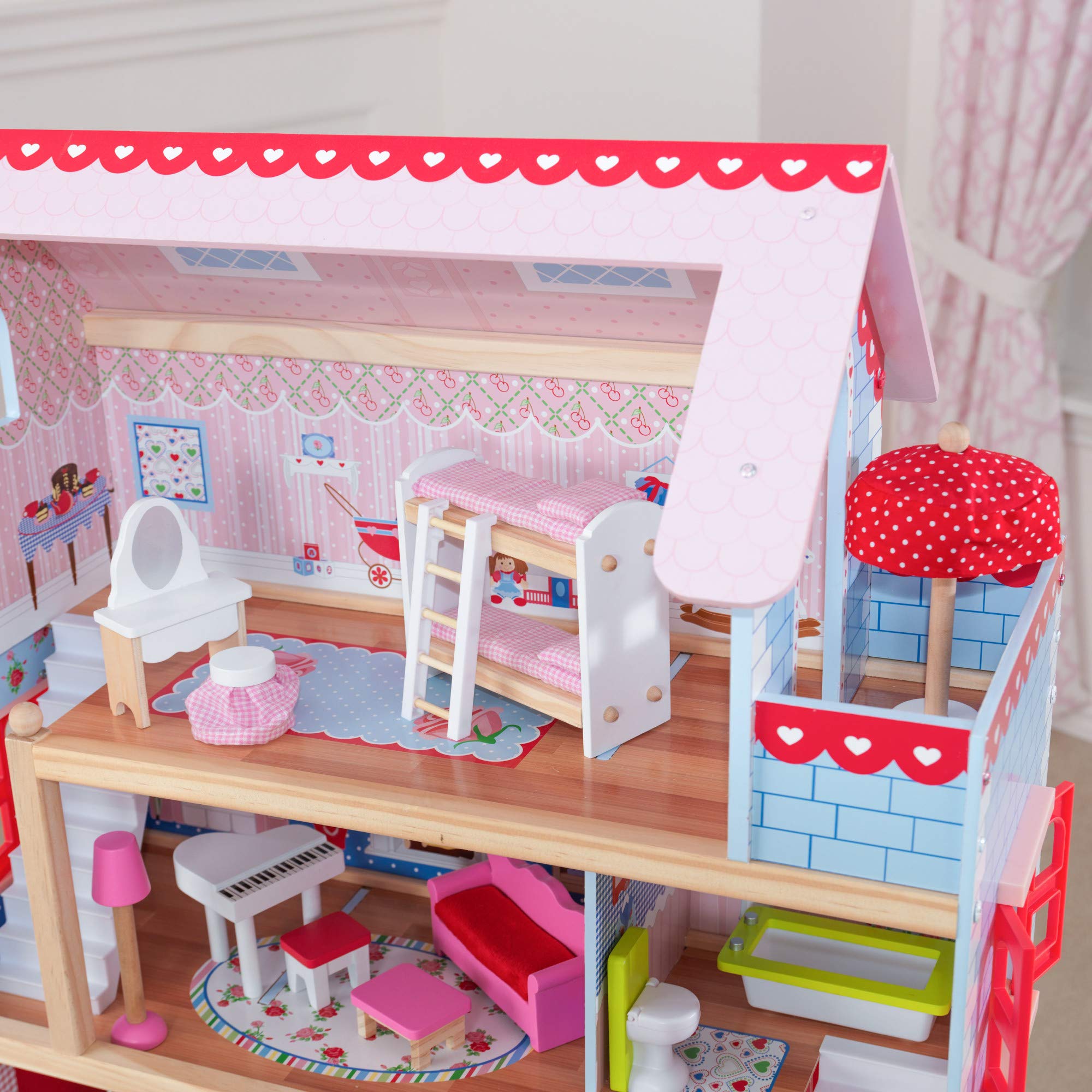 - CHEERFUL Du00c9COR: Ginghams, florals and a bright color scheme give it a country chic vibe that makes everyone feel welcome. Shutters and front door really open and close for added realism.