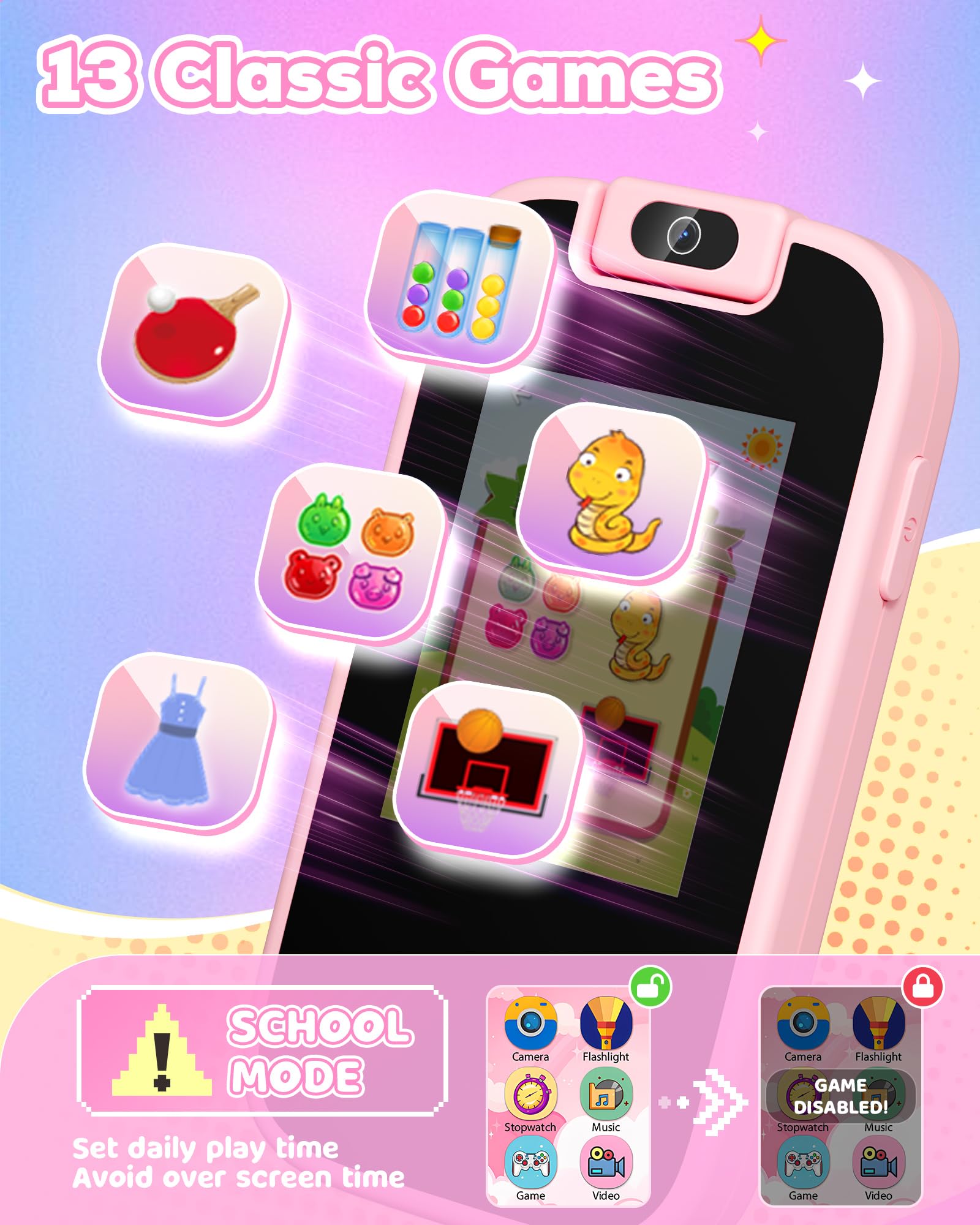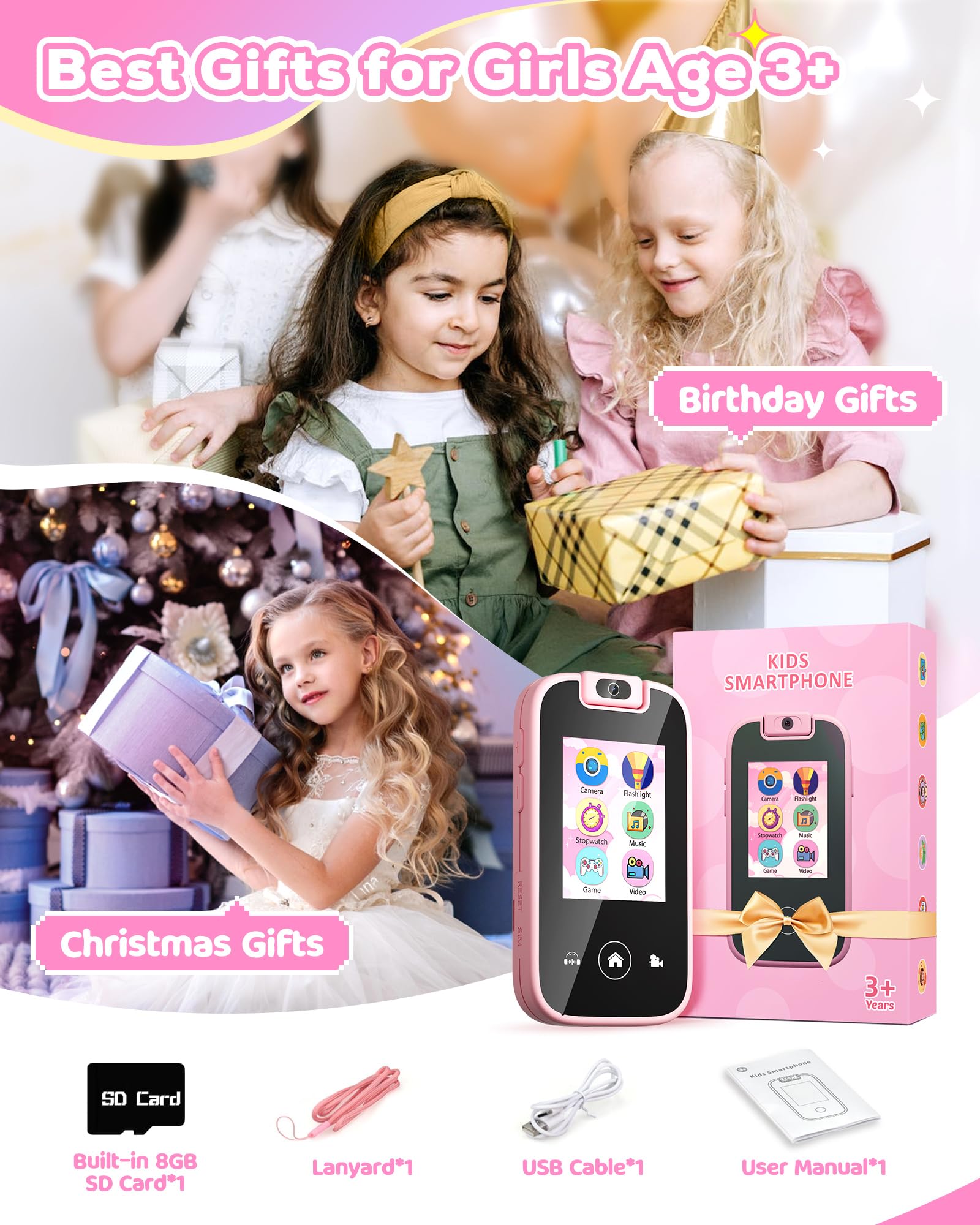 - u3010Ideal Giftsu3011This kids smart phone is a erfect birthday, Christmas, festival, and holiday gifts for boys and girls aged 3-6. Your kids will capture special moments in their life and share them with you, creating stunning memories. In addition, your child will have their first toy mobile phone, and you will never have to concern about your child using your smartphone again.