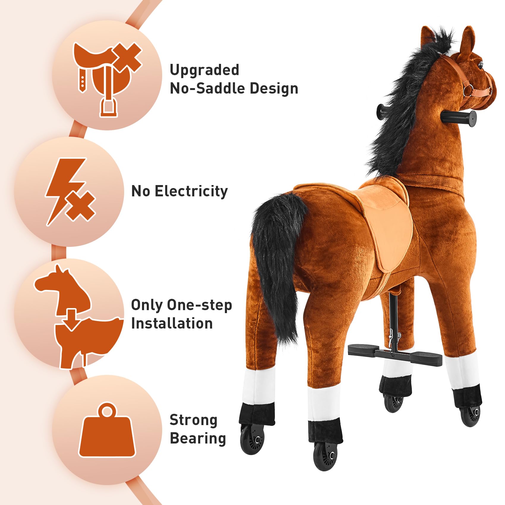 - ud83cudfc7Horse Riding Fun: Kidsgrow ride on horse no need battery or electricity, 100% Kid-powered, just like riding a real horse. Step the foot pedal to make little pony move, use the steering handle bar to control directions. Please note the wheels can not roll backwards.