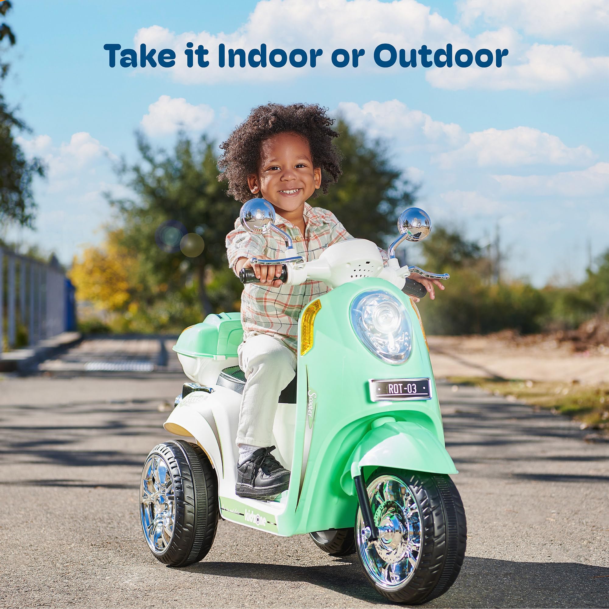 - [Ride Anywhere] Wear-resistant wheels allow your kids to ride on various surfaces, such as concrete roads, wood floors, asphalt floors, plastic runways, etc. Whether indoors or outdoors, your little ones can enjoy an exciting driving experience.