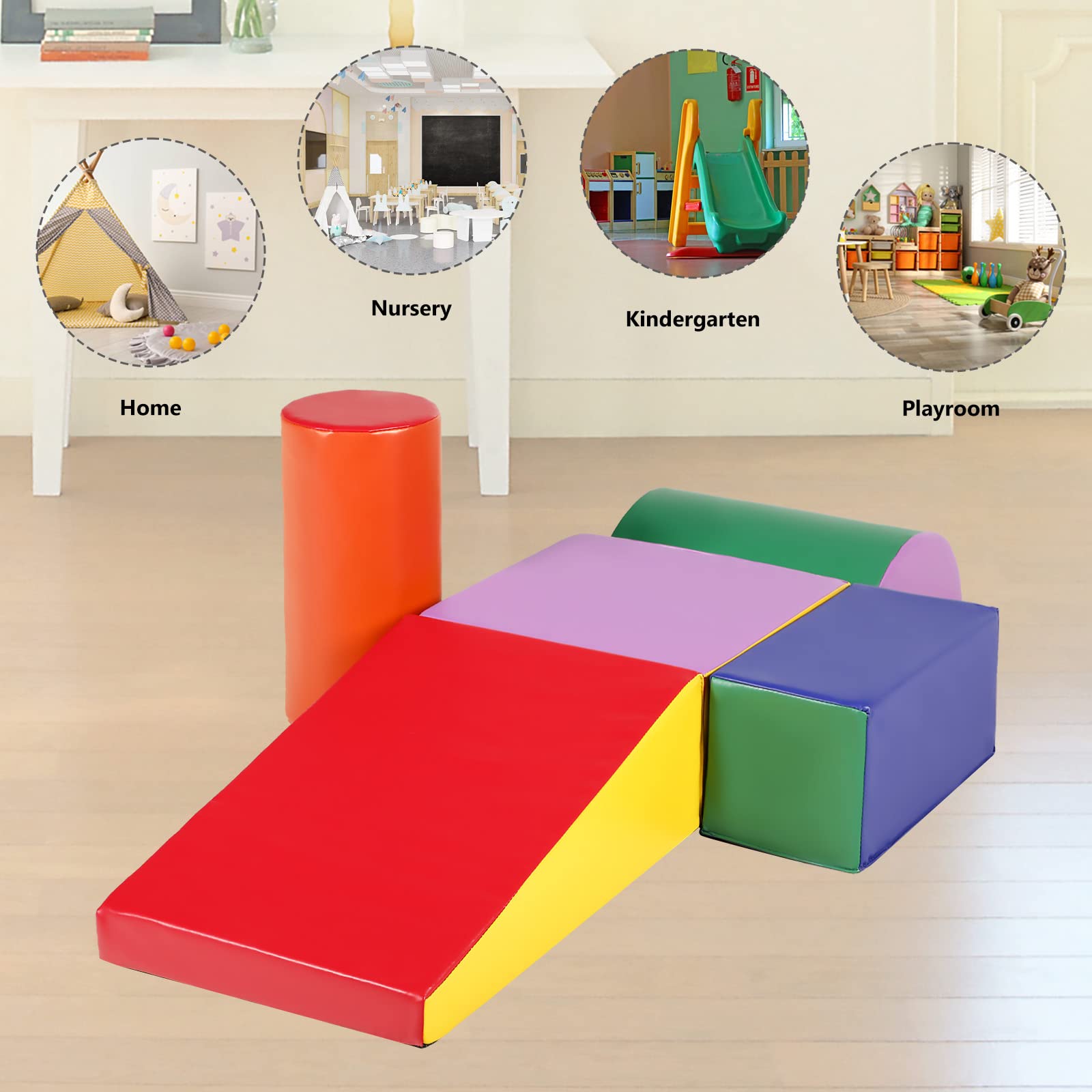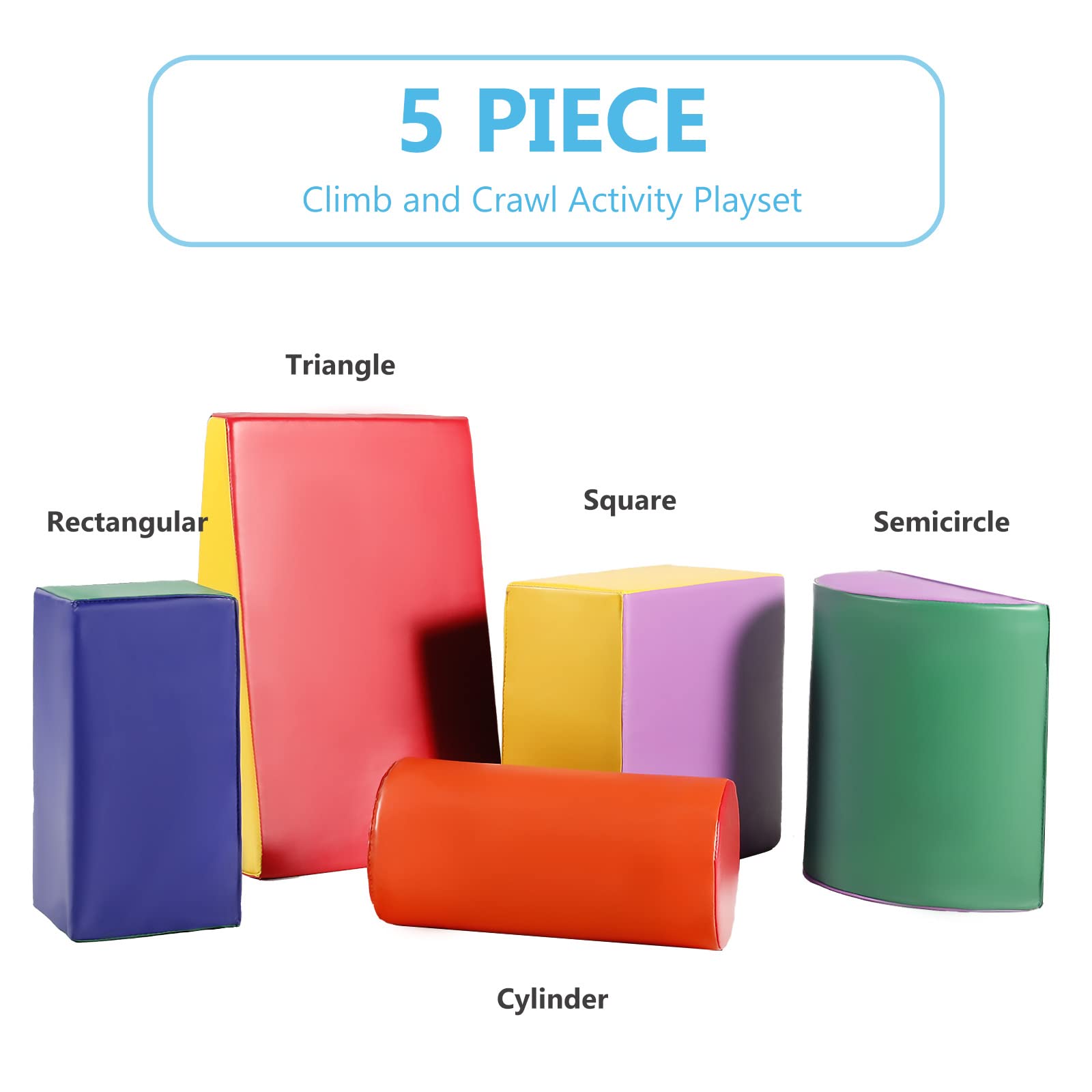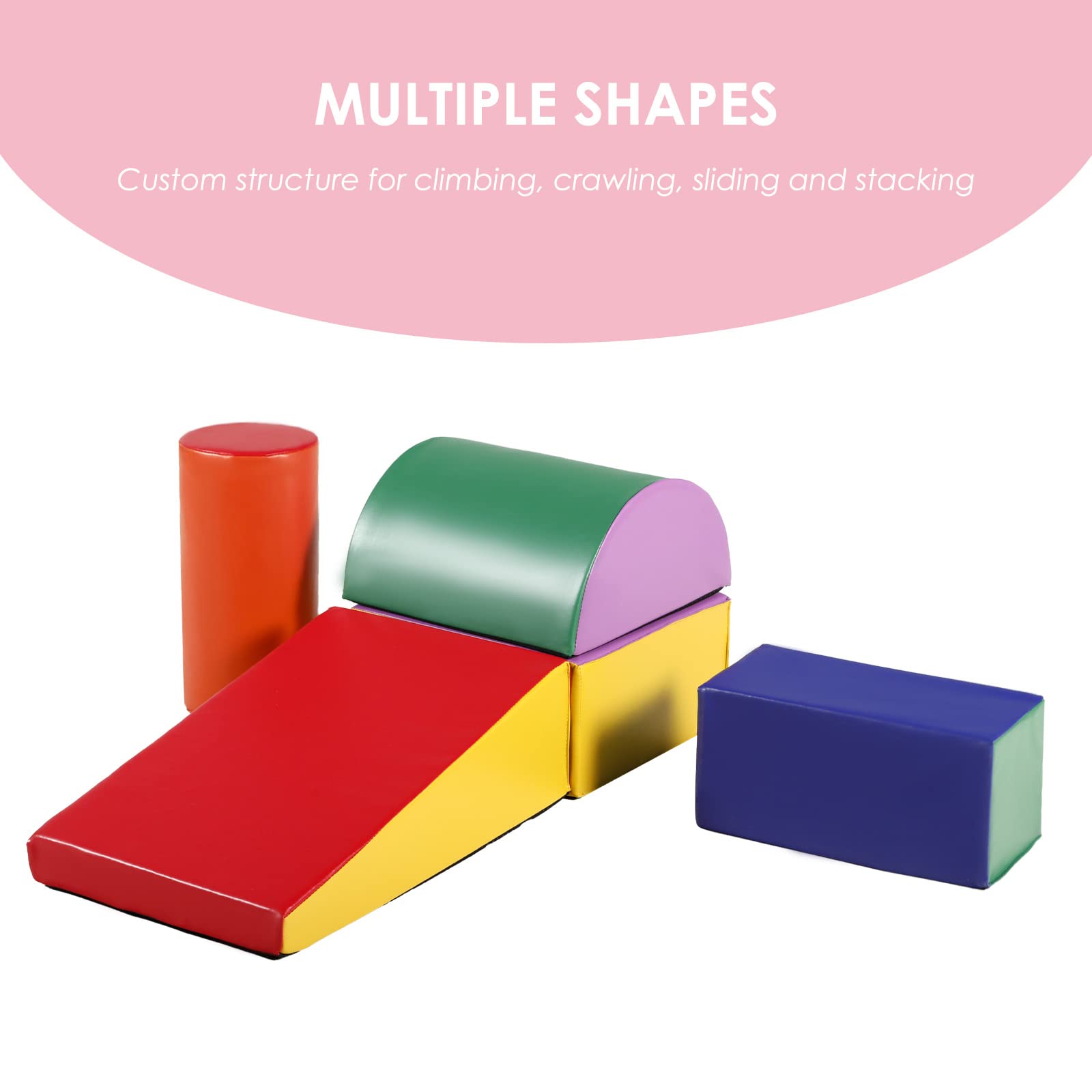 - ud83dudca1CHILD DEVELOPMENT: 5-Piece soft foam block for toddlers to climb, crawl and slide. Helps your little climbers with balance and core muscles.The surface of the climbing toy specially designed with bright colors and different shapes. Can attract toddlers' attention, exercise their color recognition ability.