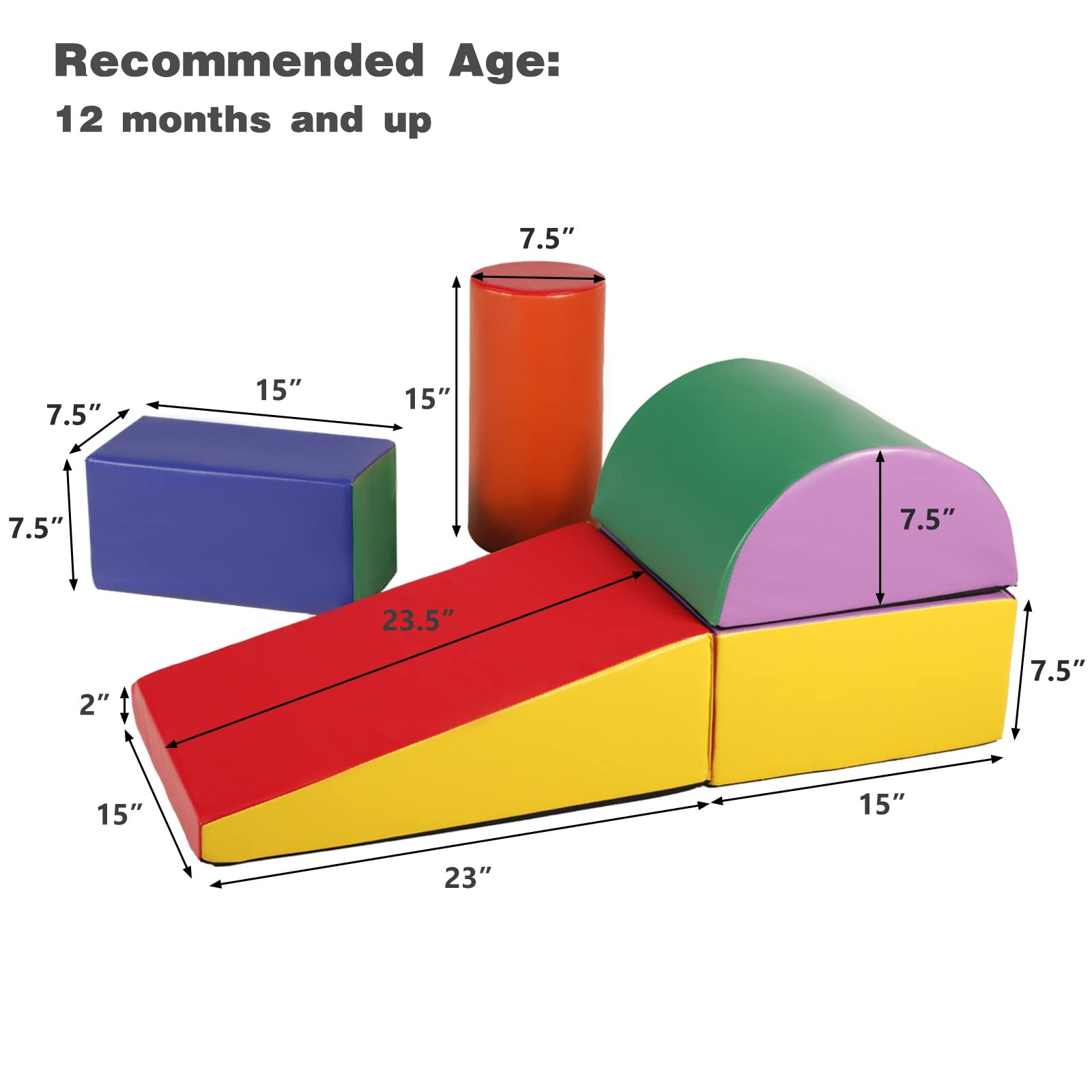 - u2764ufe0fSOFT FOAM & STRONG SEAM: Use high quality foam padding to provide a stable support for your kids. The thread is sewn tight to prevent tearing. Product dimensions: Cylinder: 7.5"x15"; Rectangular: 7.5"x7.5"x15"; Square: 7.5"x15"x15u2019u2019; Triangle: 23"x15"x 2"-7.5u2019u2019; Semicircle: 15"x15"x7.5".