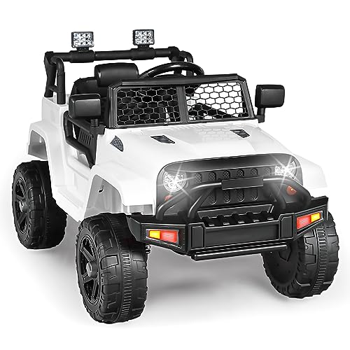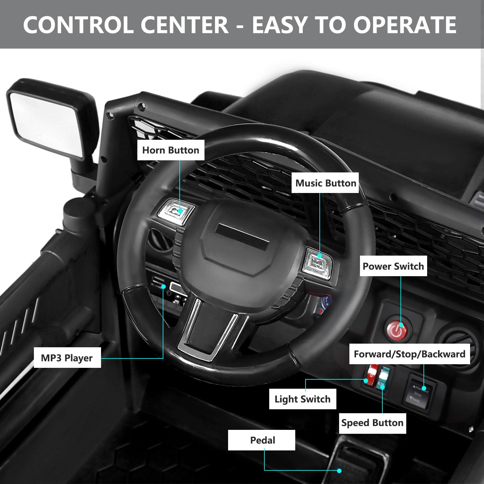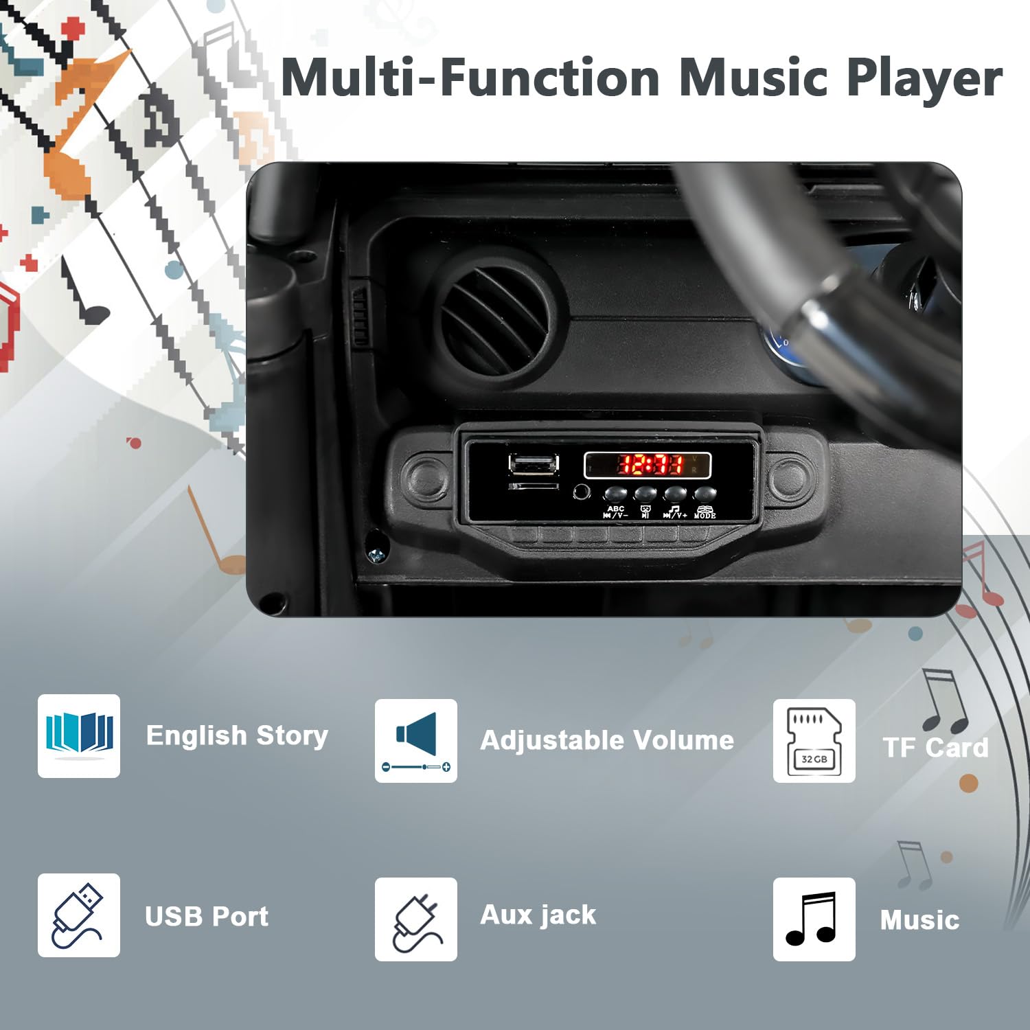 - u2764FUN DRIVING EXPERIENCE: The kid driving car is equipped with a multi-functional music player. This not only provides early education for children, but also makes driving a pleasure. In addition to built-in music and stories, you can also use AUX input, USB port and a TF card slot. Parents can play your child's favorite music, giving your toddler multiple music choices. LED headlights of the kids electric car can be controlled with one click.