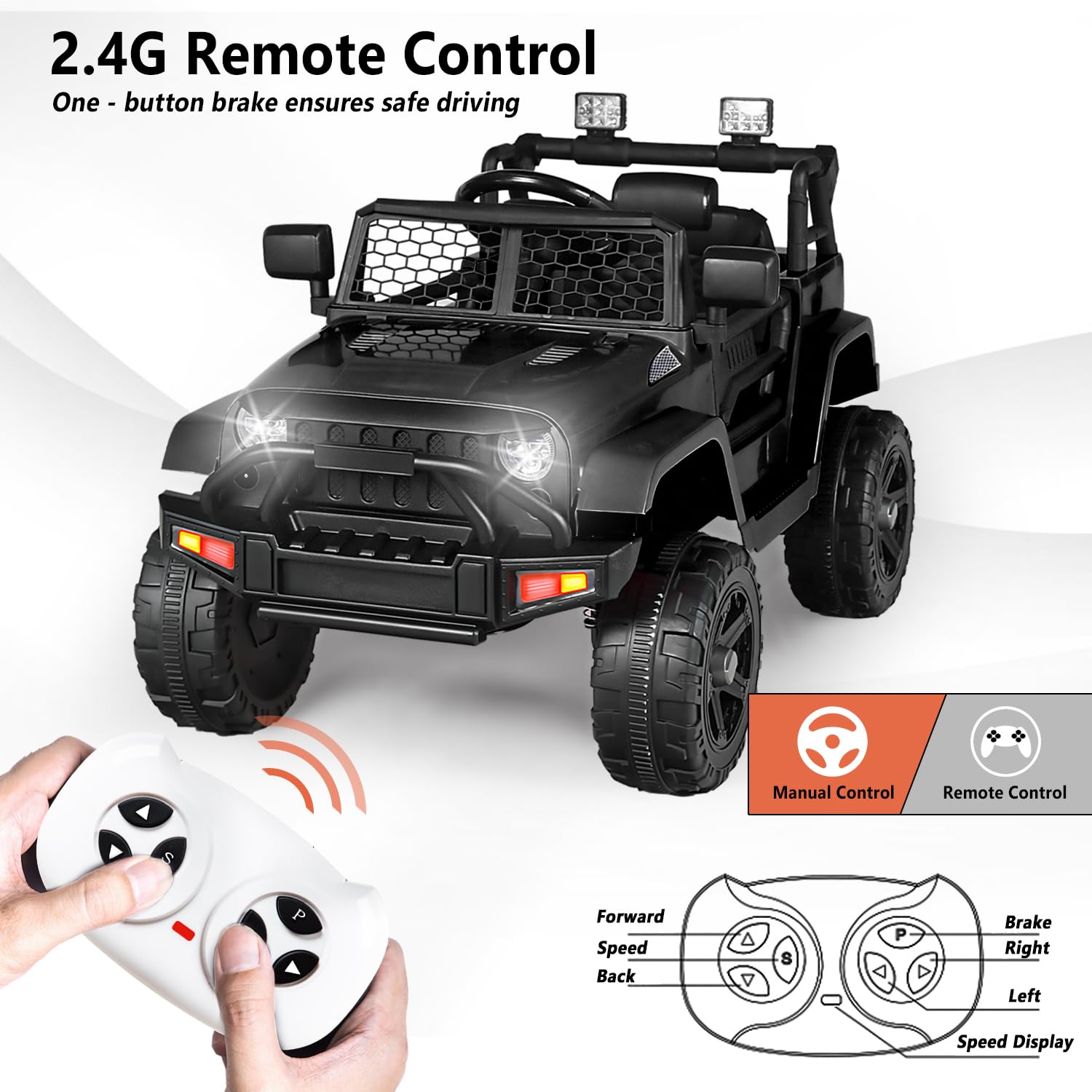 - u2764TWO DRIVING MODES: 1. Manual control for children. Your kids can control the ride on car through the steering wheel and pedal. Children can use this driving experience to improve their independence and coordination. 2. Remote control by parents. High sensitivity remote control can control the direction and 3 speeds of the kids car. Parents can control the brake with one key. Remote control is always preferred to manual control, fully ensure the safety of children driving.