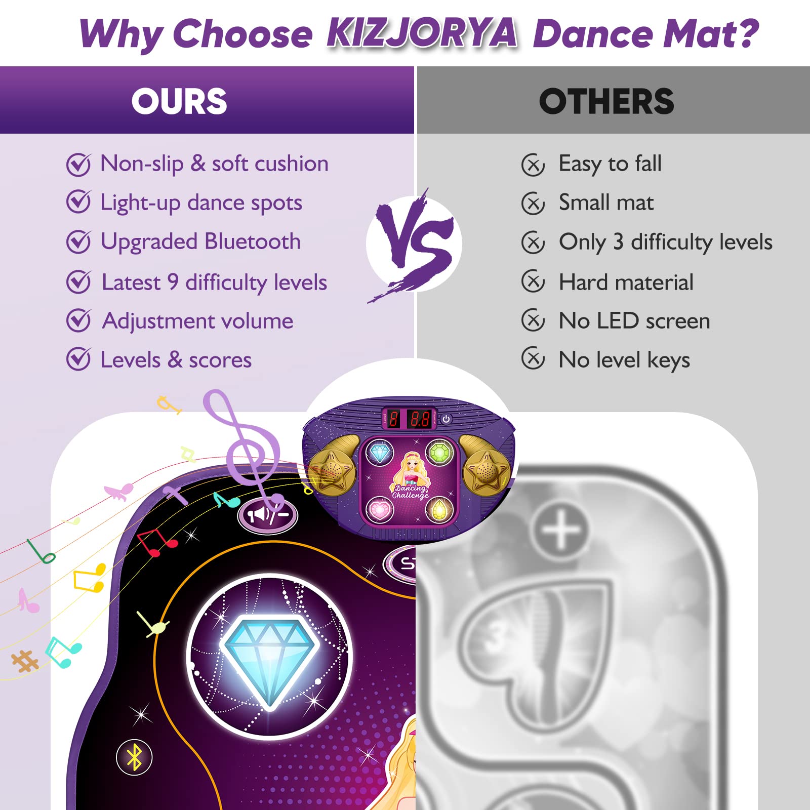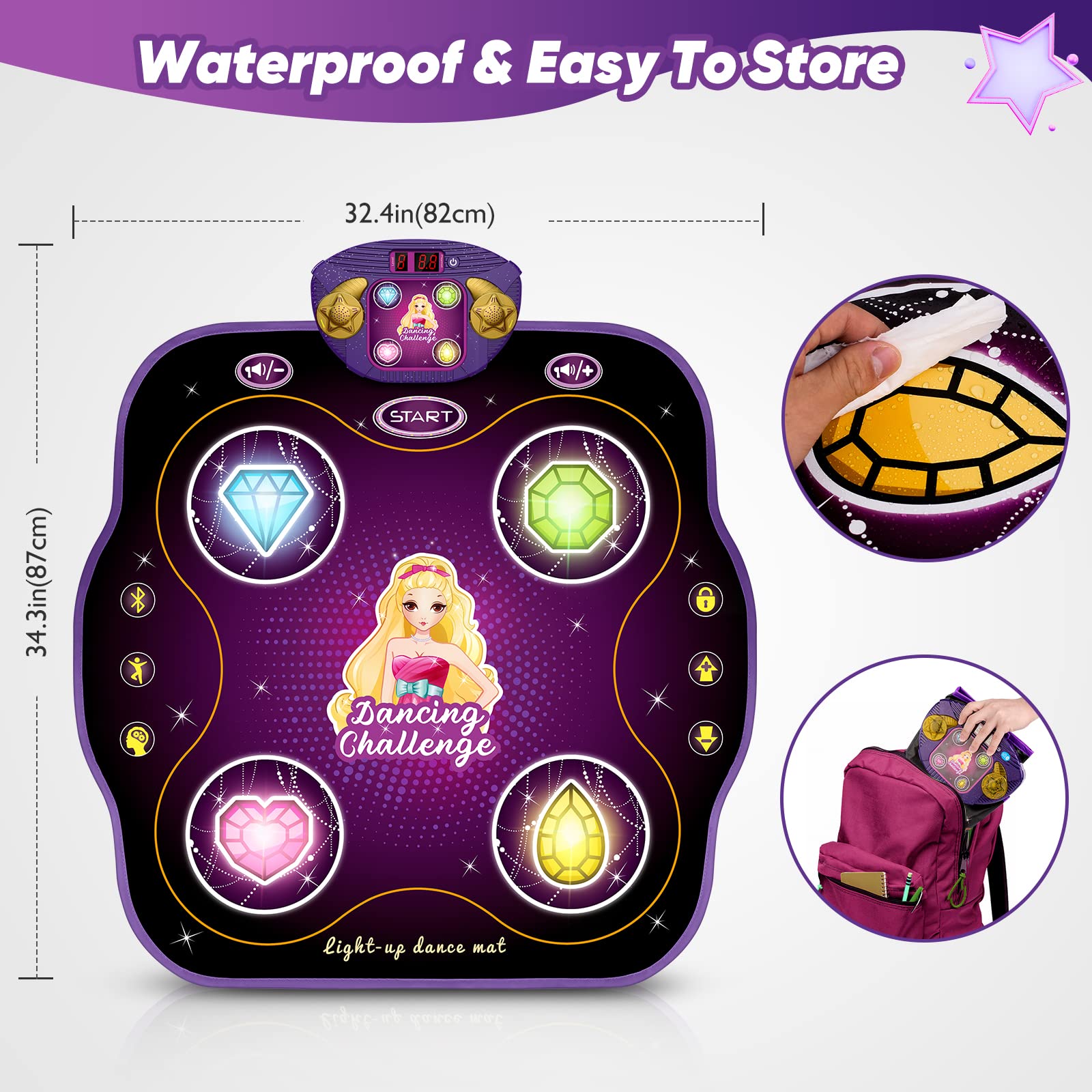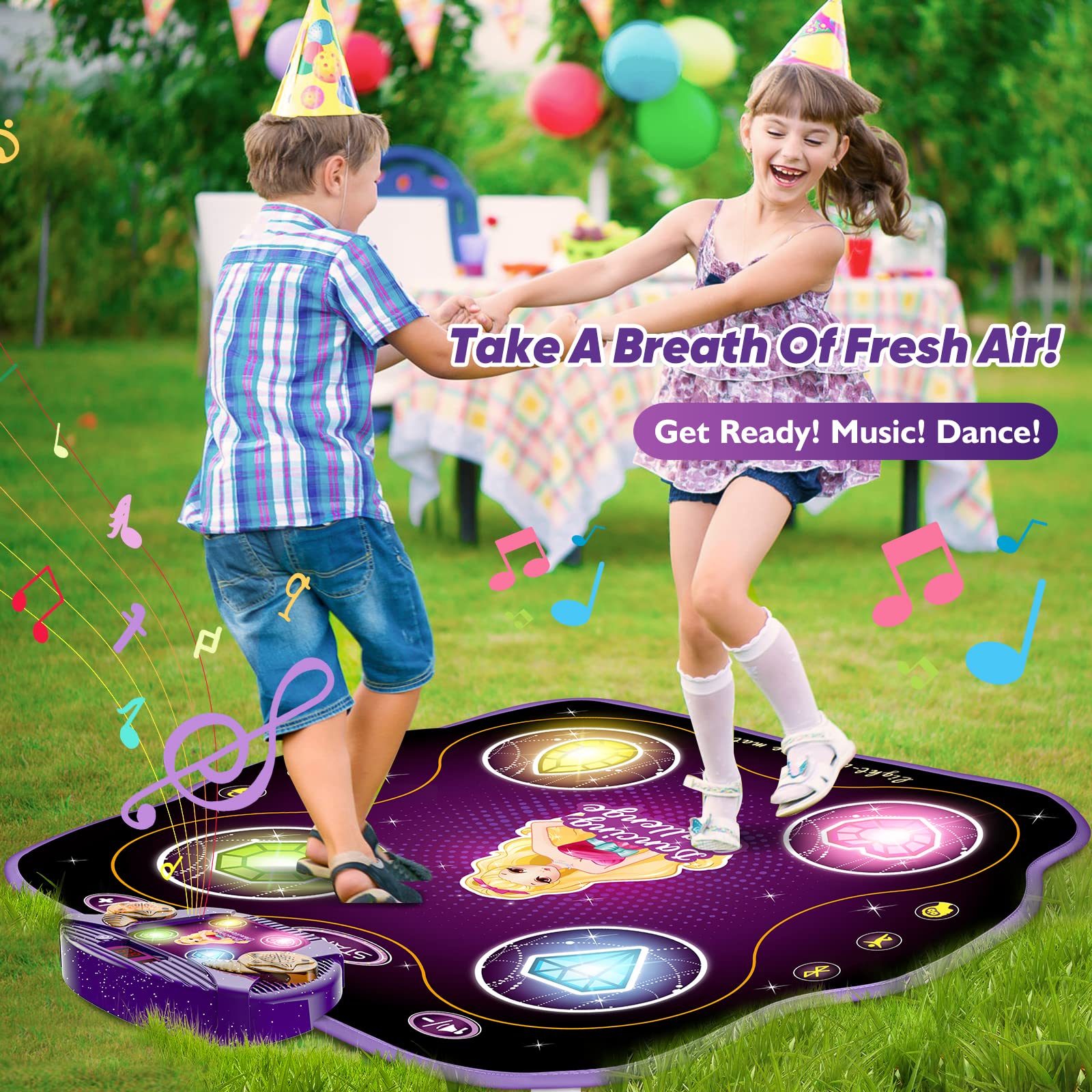 - 71'' X 31'' Giant Piano Mat: Large dancing mat can handle both kids and adults with whopping of almost 6 feet across. Playing musical piano mat is a wonderful screen-free activity to burn off energy and enjoy ideal fun time for entire family. Let's try to compose a song of family with addictive bouncing action and cooperation on this highly interactive music toys.