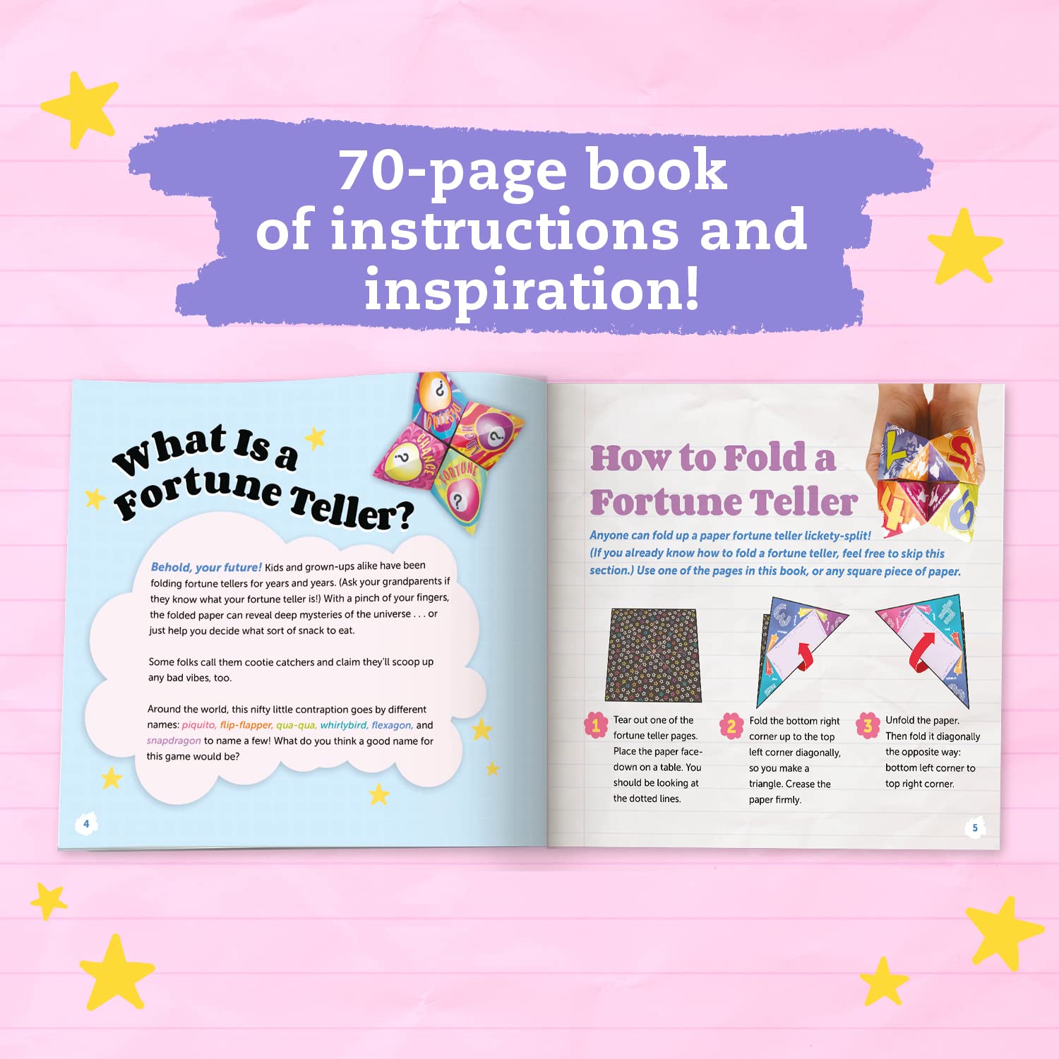 - 70-page paperback book with tear-out pages to fill in and fold up