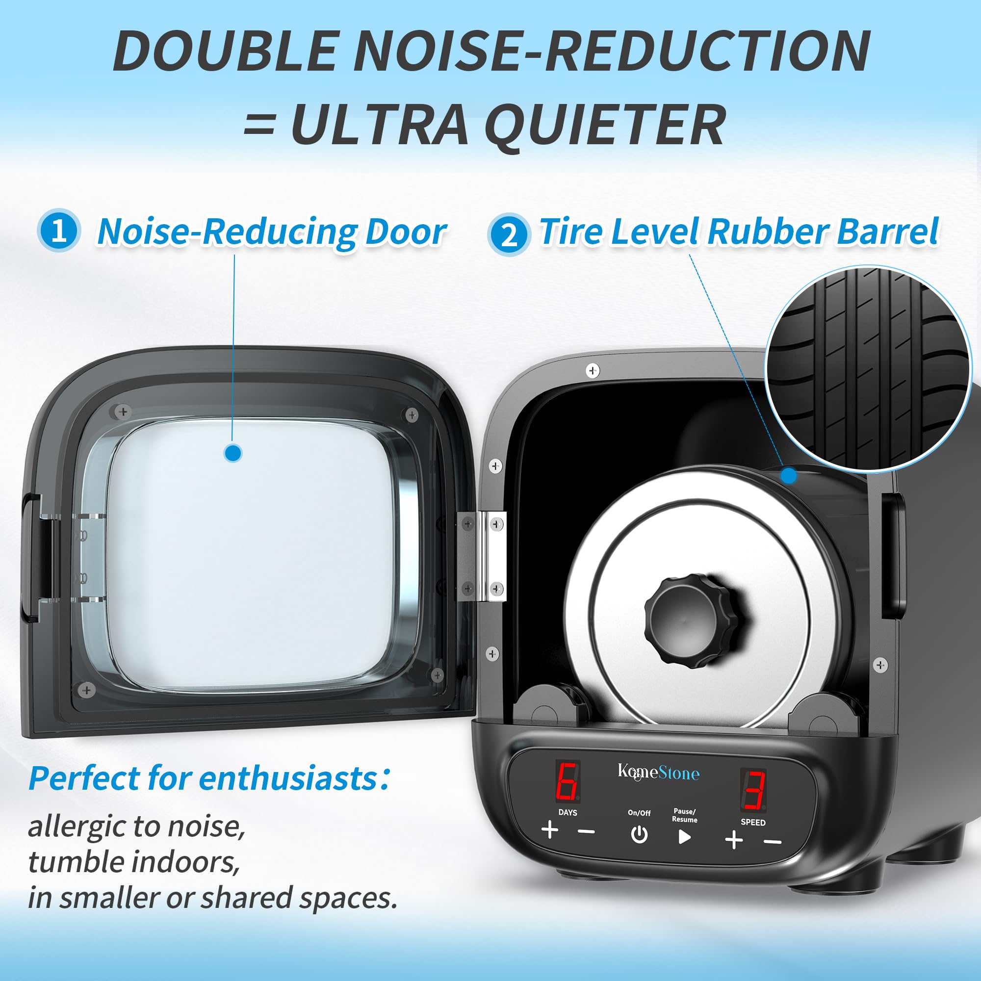 - DIVE INTO THE FUN ROCK TUMBLING: The KomeStone rock tumbler is designed to transform rough, raw rocks into polished gemstones. Each cycle reveals the remarkable changes in the rocks, providing an excellent lesson in patience and geology for kids. It's a brilliant idea for moms who enjoy making jewelry and fathers who collect rocks.
