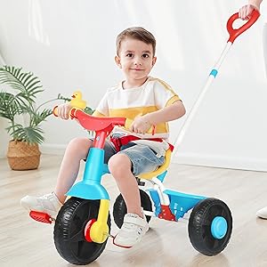 • 2-IN-1 TODDLER TRICYCLE u2013 This unique trike for kids gives them multiple options to learn and play including parent-push mode with a long parent-push bar, or traditional cycling mode.