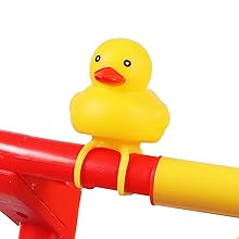 • SOFT RUBBER DUCK BELL u2013 Riding should be exciting and feel very rewarding for young toddlers which is why this balance bike for 18-month-old to 4-year-old children comes with a classic squeezable rubber duck that makes a cute squeak sound.