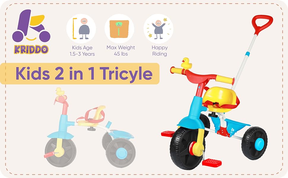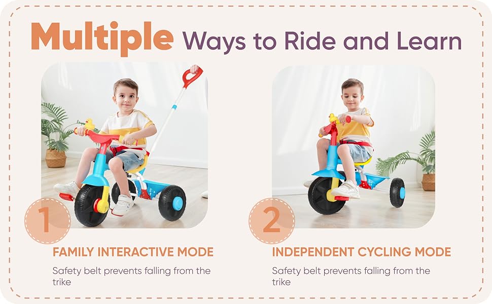 - 2-IN-1 TODDLER TRICYCLE u2013 This unique trike for kids gives them multiple options to learn and play including parent-push mode with a long parent-push bar, or traditional cycling mode.