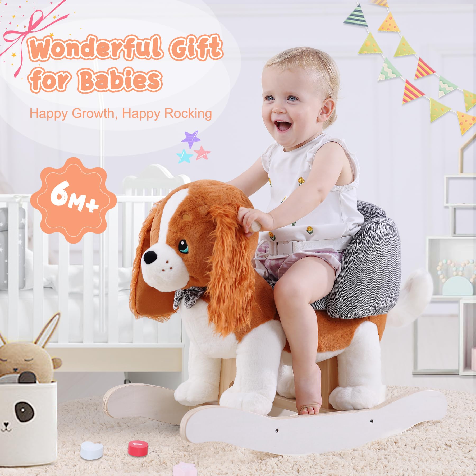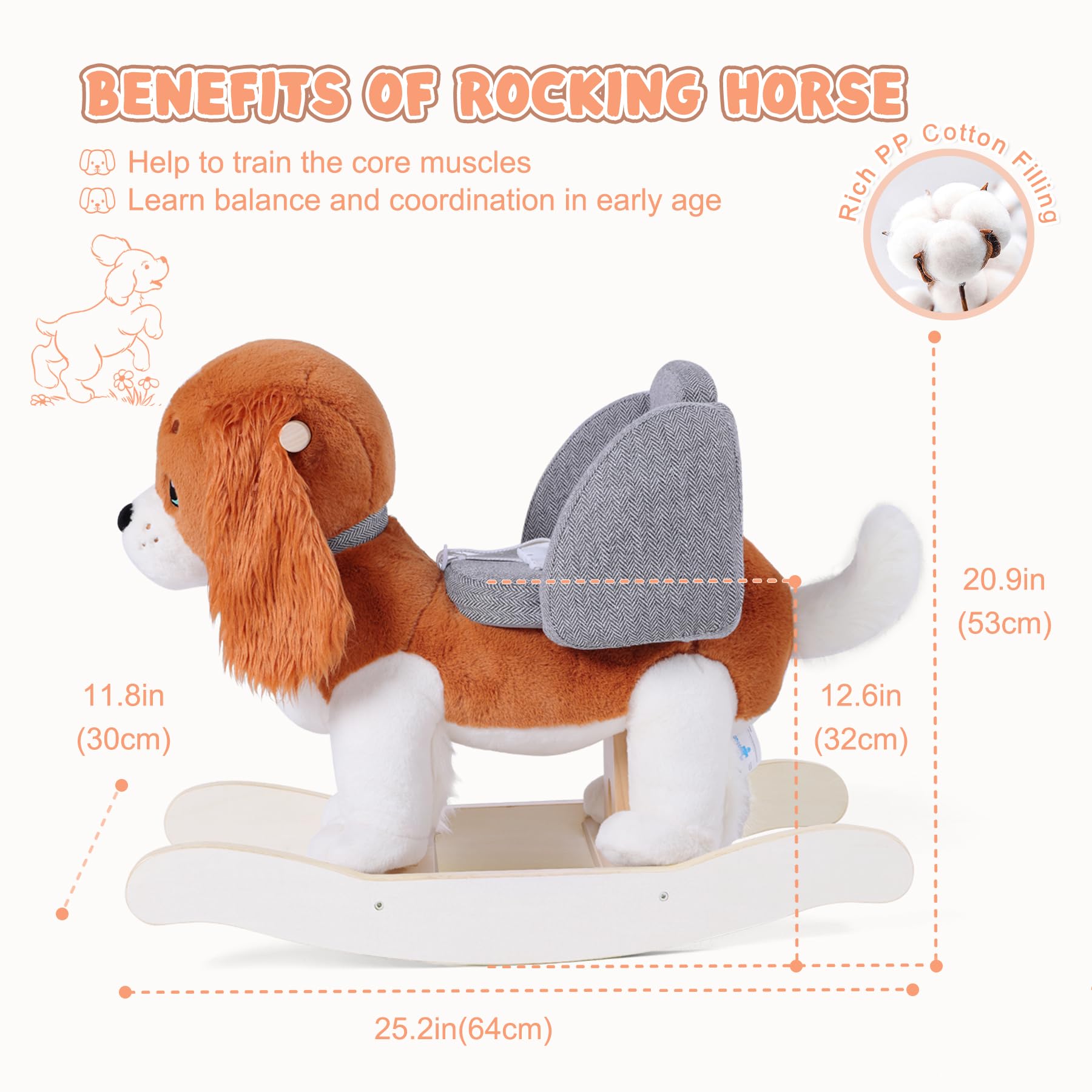 - ROCKING HORSE BENEFITS - The King Dog Wooden Rocking Horse will help train young babies' core muscles, develop their physical coordination and promote early intellectual development. Babies will gradually learn to rock and play independently, building confidence and good character at an early age.