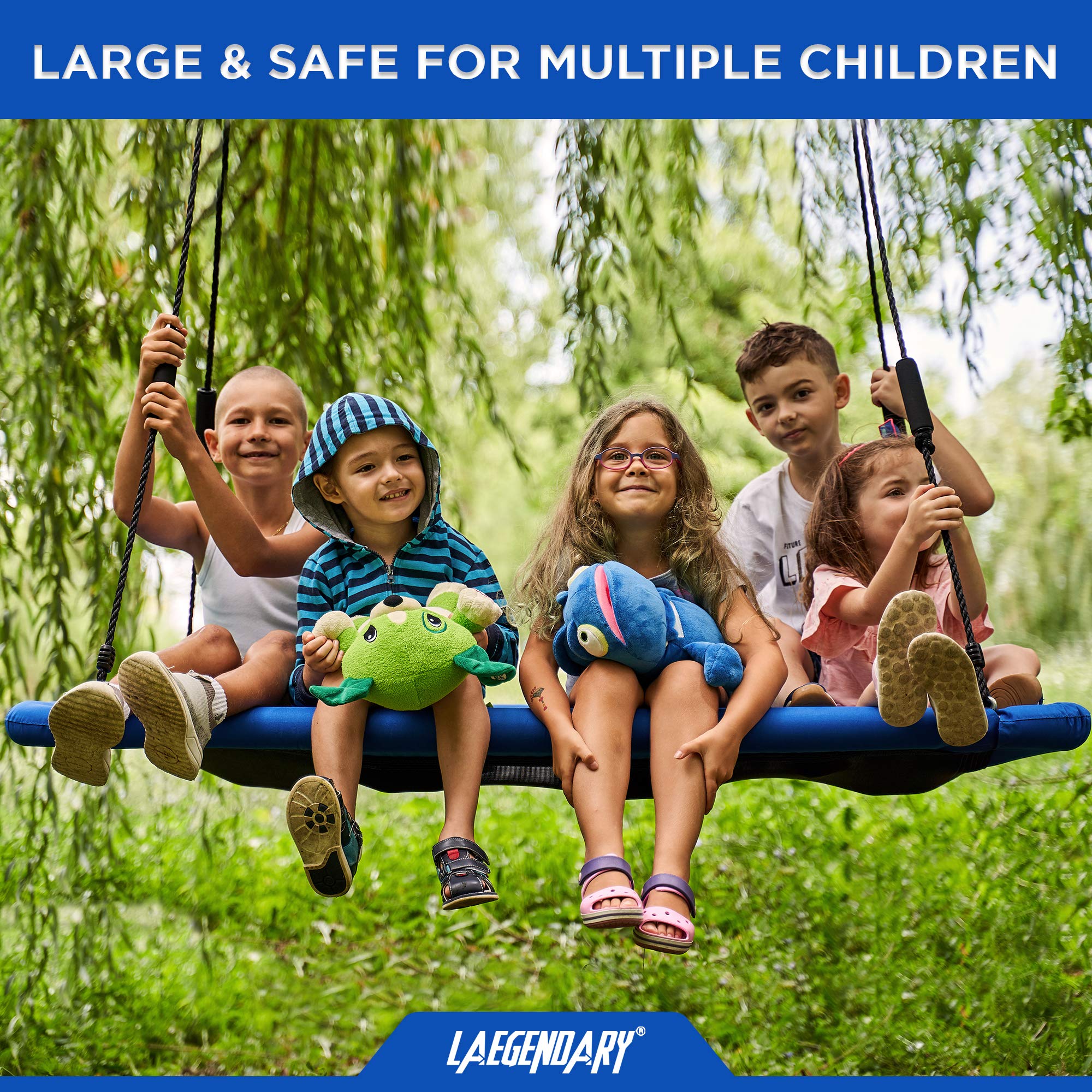 - SAFE & STURDY - No pinching, no scratching, just swinging! With extra thick padding, weather-resistant material, and soft-touch handles, these large swings for kids will be the source of fun for years to come.