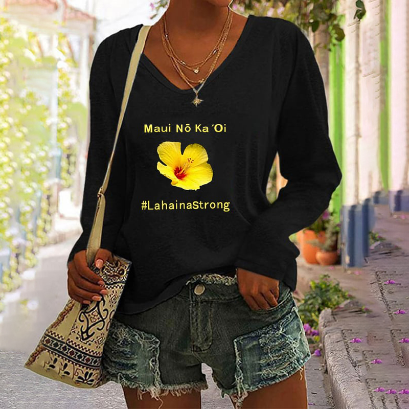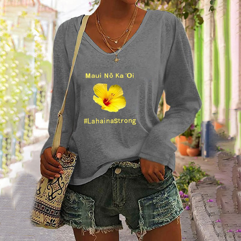 • Lahaina Strong V Neck Long Sleeve T-Shirt