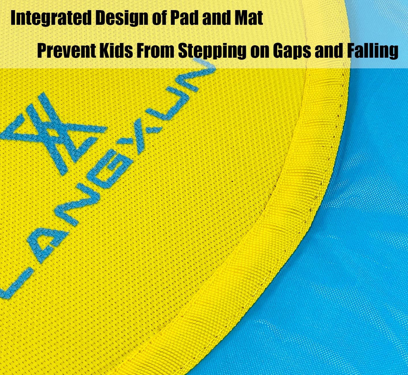 - Quiet & Safe Jumping Play - After repeated trials and adjustments, we determined the number of elastic rope and elasticity index. It can not only ensure the safety of children when jumping, but also allow children to have the greatest fun when jumping. The jump mat and protective pad are stitched to prevent children from falling over when they jump. This trampoline is suitable for children under 44 pounds.