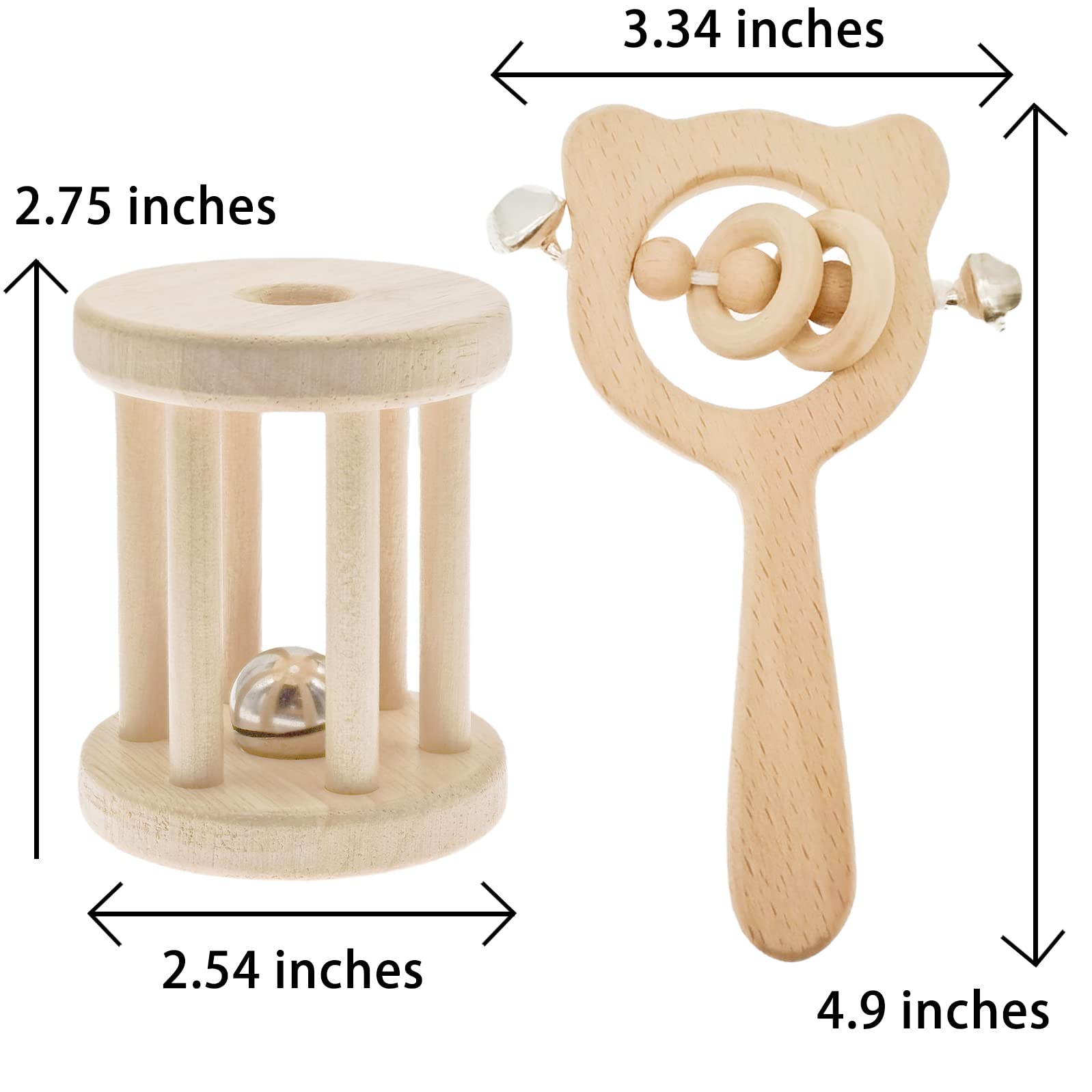 - PREMIUM SAFE MATERIAL - Wooden Baby Rattle Toys are made of natural quality wood, non-toxic and no smell, 360u00b0roundnessand burr-free. As a baby teether toys, it's safe for baby to play and chew.