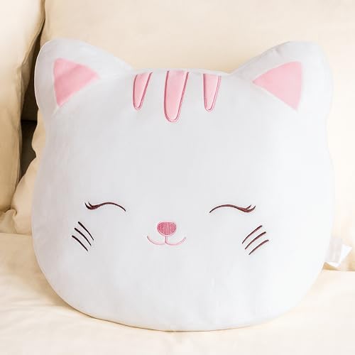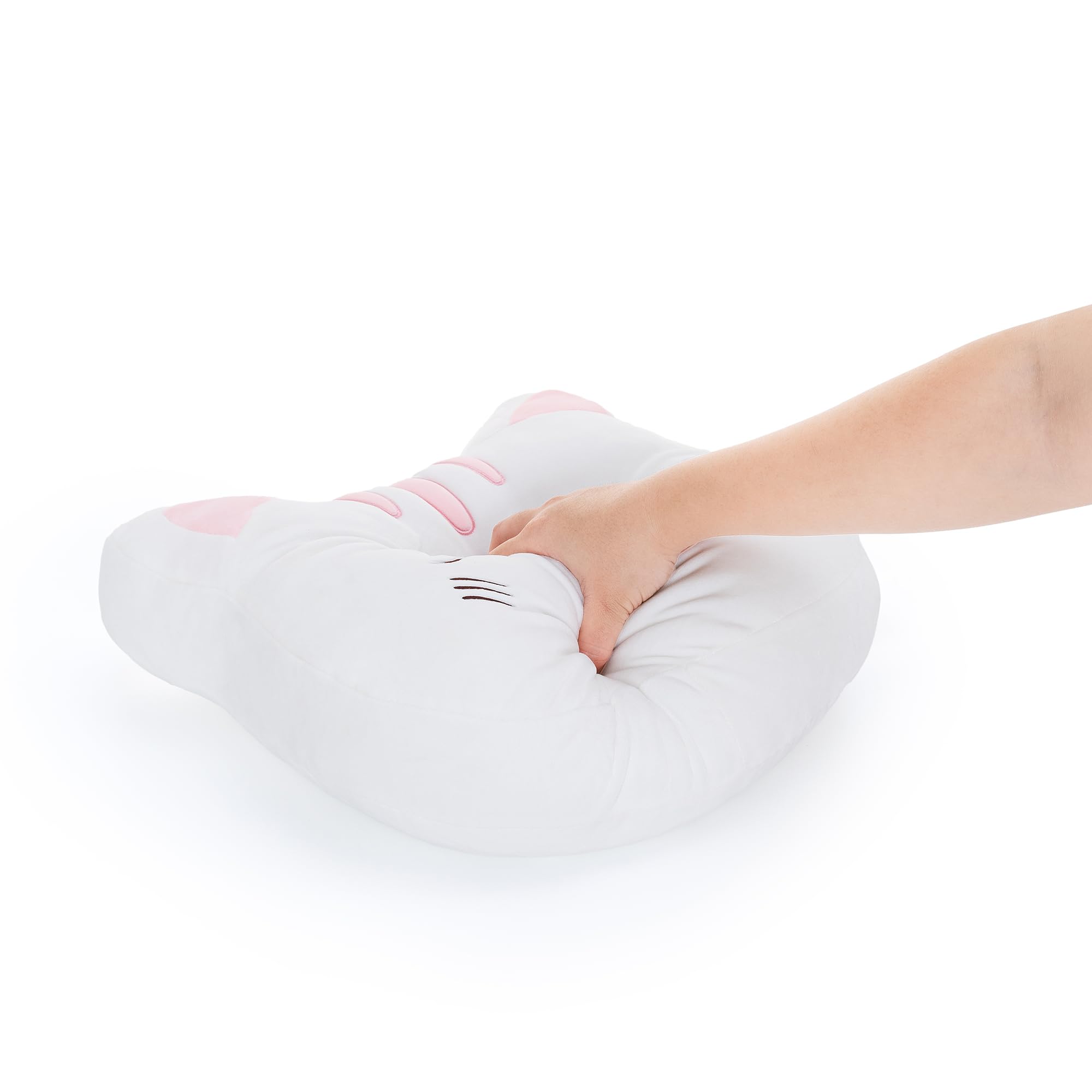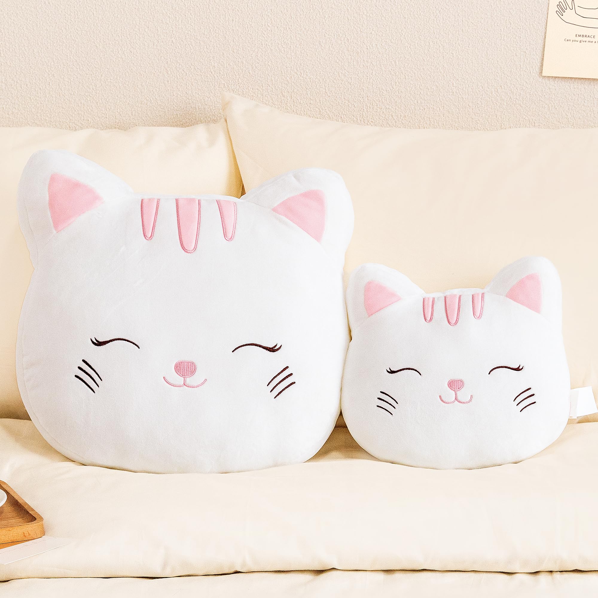 - This White Cat plush pillow has high-quality PP cotton filling and skin-friendly fabrics give you better skin touch feeling. Soft and it feels like you are hugging a cotton candy.