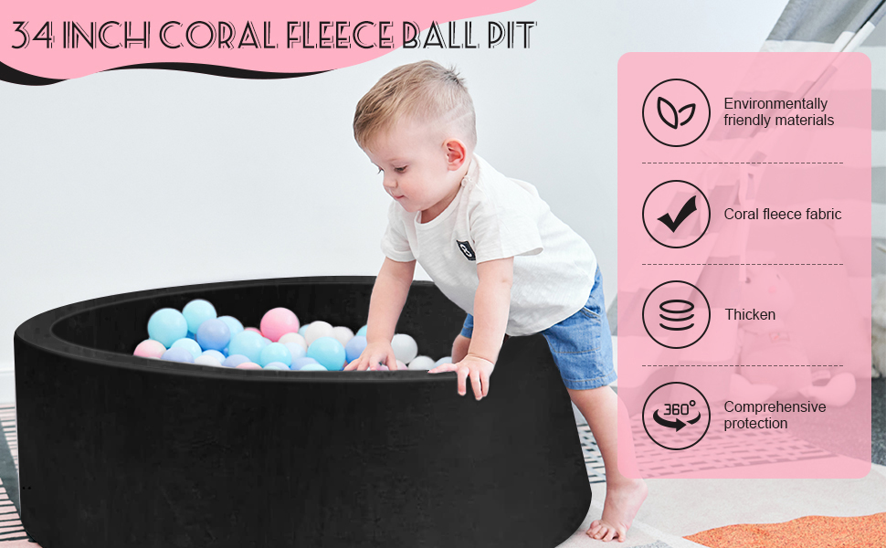 • u2764SAFE FOR KIDS u2764:Compared with the use of unstable ultra-thin fabrics and easily broken holder on the market, Soft Ball Pit is made of upgraded premium non-toxic memory foam and super soft velvet fabric, which can give kids a safer play experience. Children are safe and stable when playing.