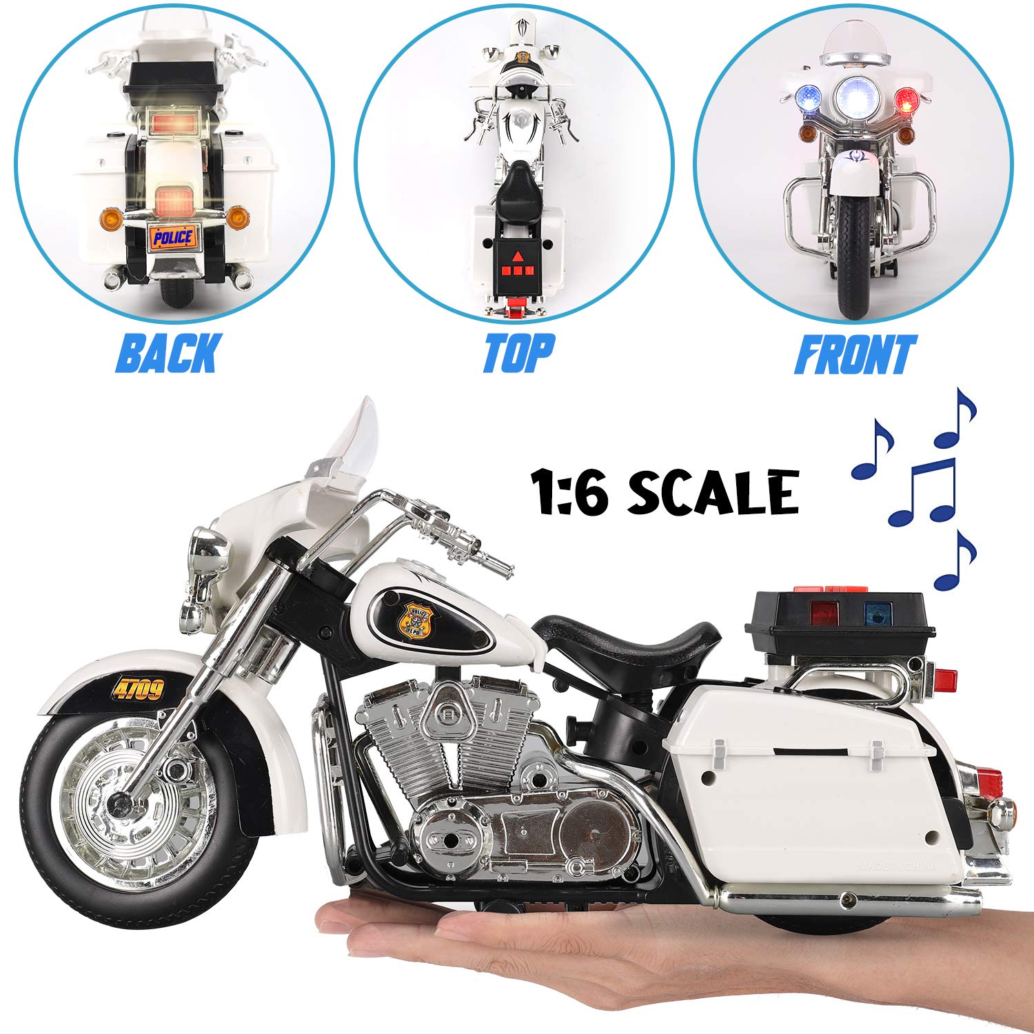 - u2705 BIG SIZE: 1:6 Scale Police Motorcycle Measures Approximately 13" Long and 7" Tall. Packed in Retail Box makes for the perfect gift. Ages 3 and Up.